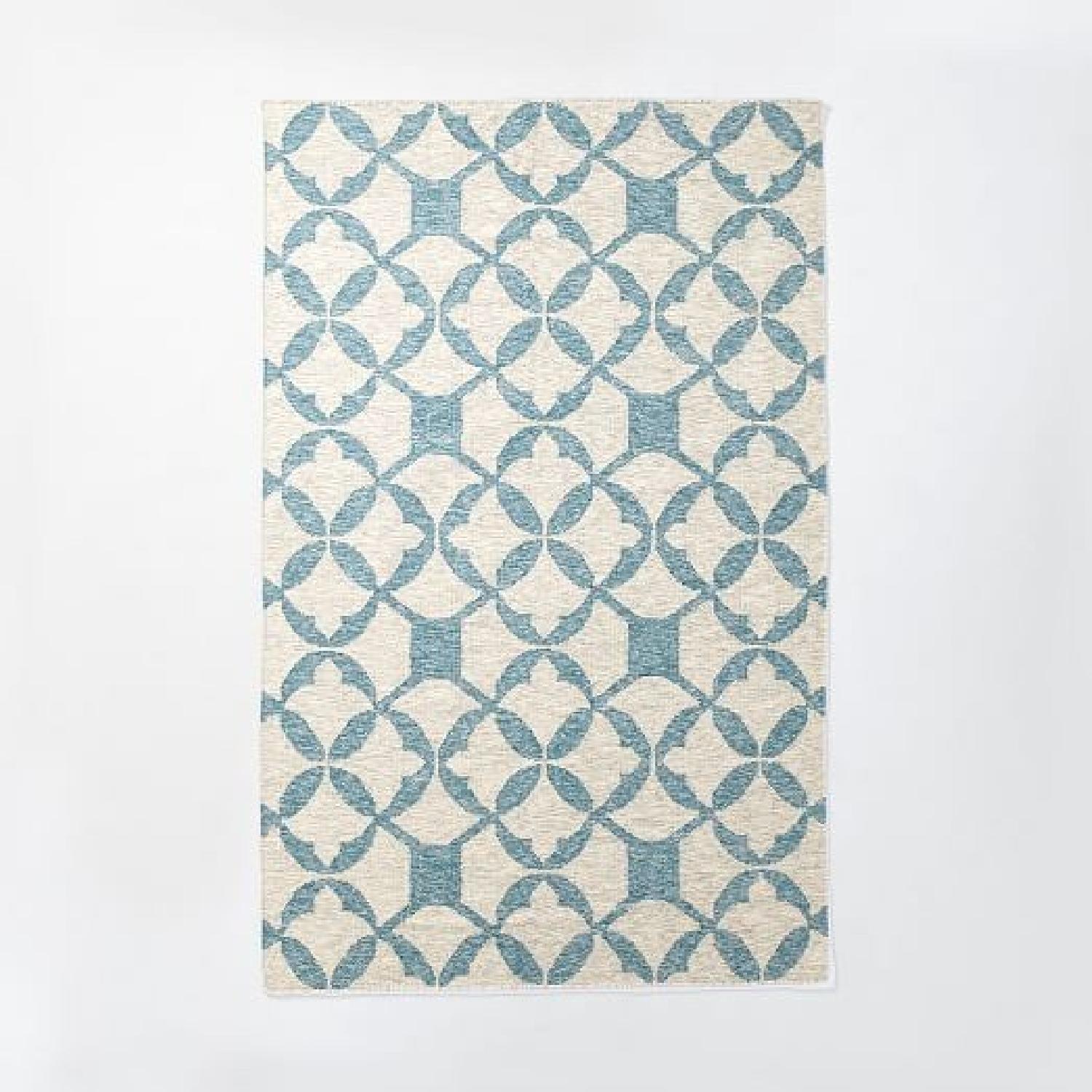 West Elm Tile Wool Kilim Rug in Turquoise Blue