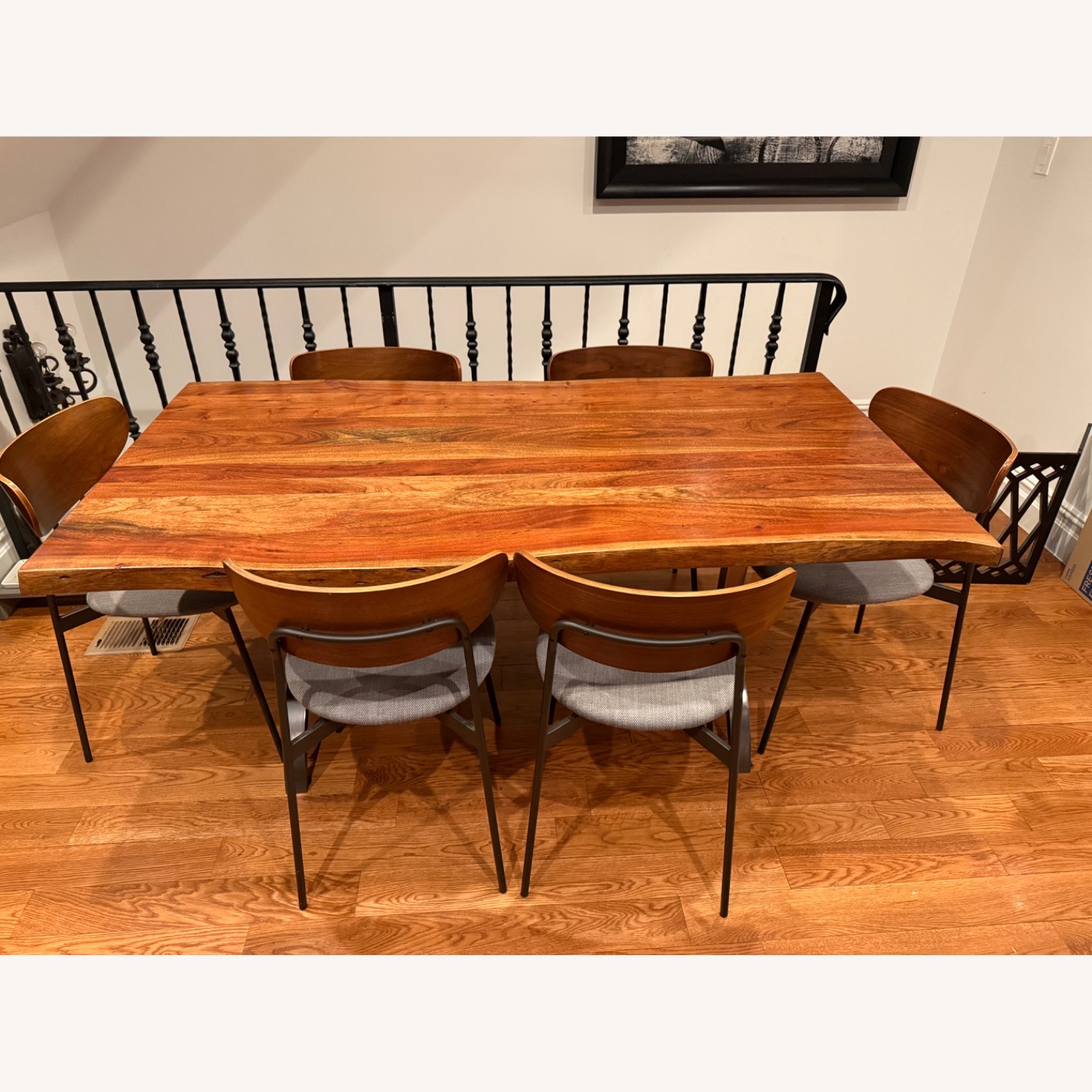 Seller's Notes:This gorgeous natural edge dining table is painful for us to part with. Unfortunately we are downsizing and no longer in a home we can have it or we would most certainly not be getting rid of it. It is uniquely beautiful and there has never been an occasion when it has been sat at that someone hasn't commented on how lovely it is. We are including the chairs because to us they are so much a part of it at this point that it just makes sense they should rehome together. You won't regret bringing this into your home!