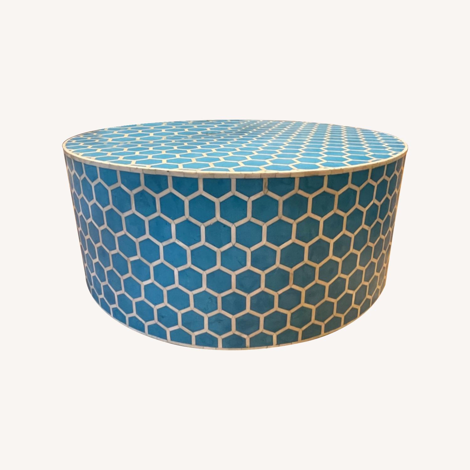 West Elm Turquoise Bone Inlay Round Coffee Table