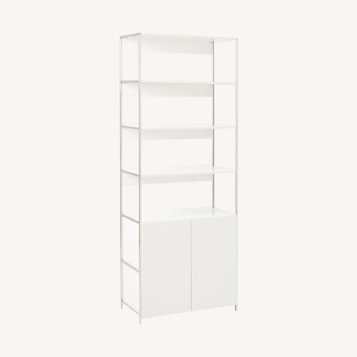 West Elm White Lacquer Bookcase w/ Cabinet
