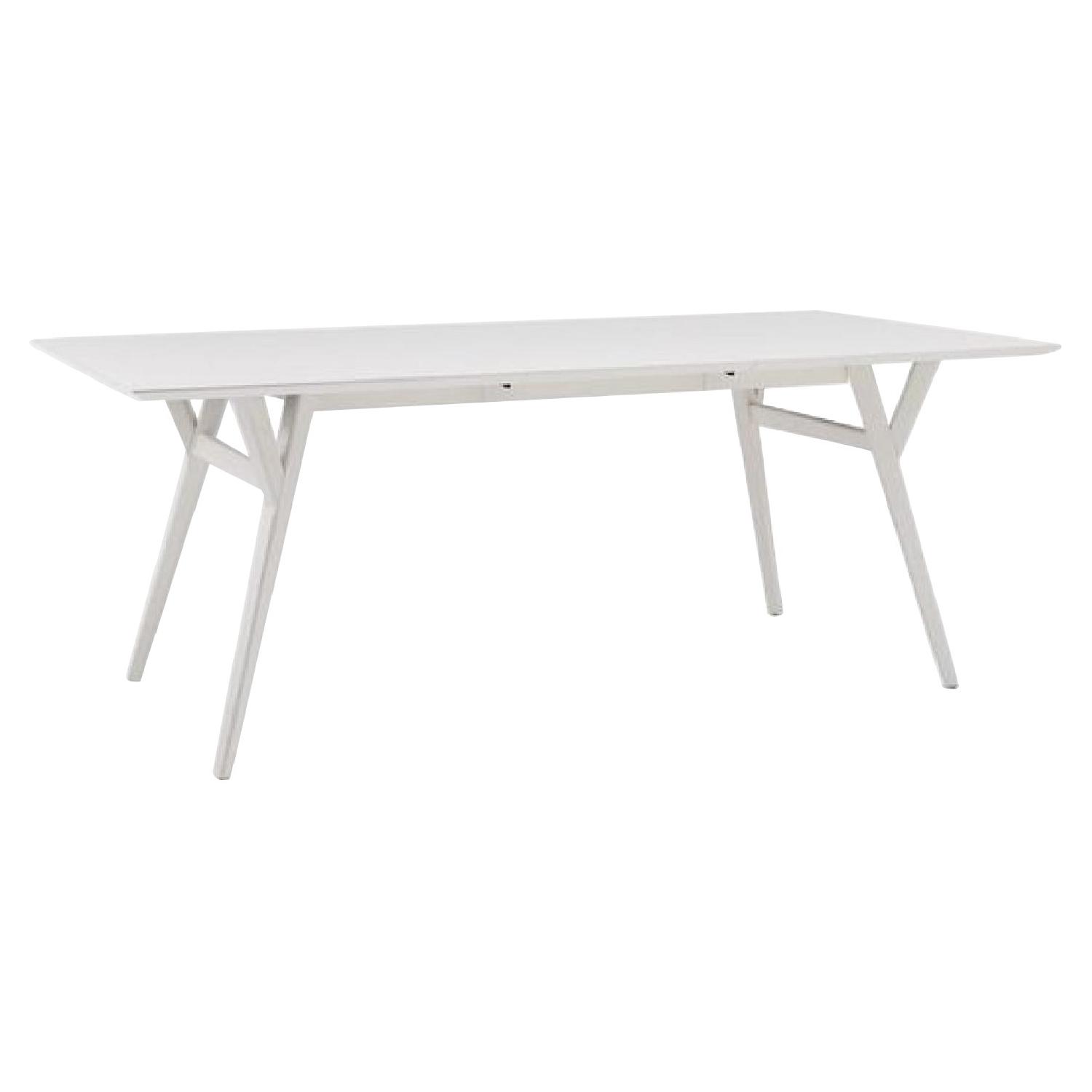 Seller's Notes:Moving and selling this discontinued expandable dining table (retailer link shows the same table in wood finishes). It's a nice size on its own (seating 4 comfortably), but expands to seat 6 (although I've fit up to 8 before) for dinner parties or larger gatherings. Expanded dimensions are: 80"w x 38"d x 30"h. Condition (see photos): There are some faint stains in one area, but they aren't super noticeable. The corners of the table did sustain some damage during a recent move, hence the lower asking price. However, it's still a sturdy, quality piece with many good years ahead.