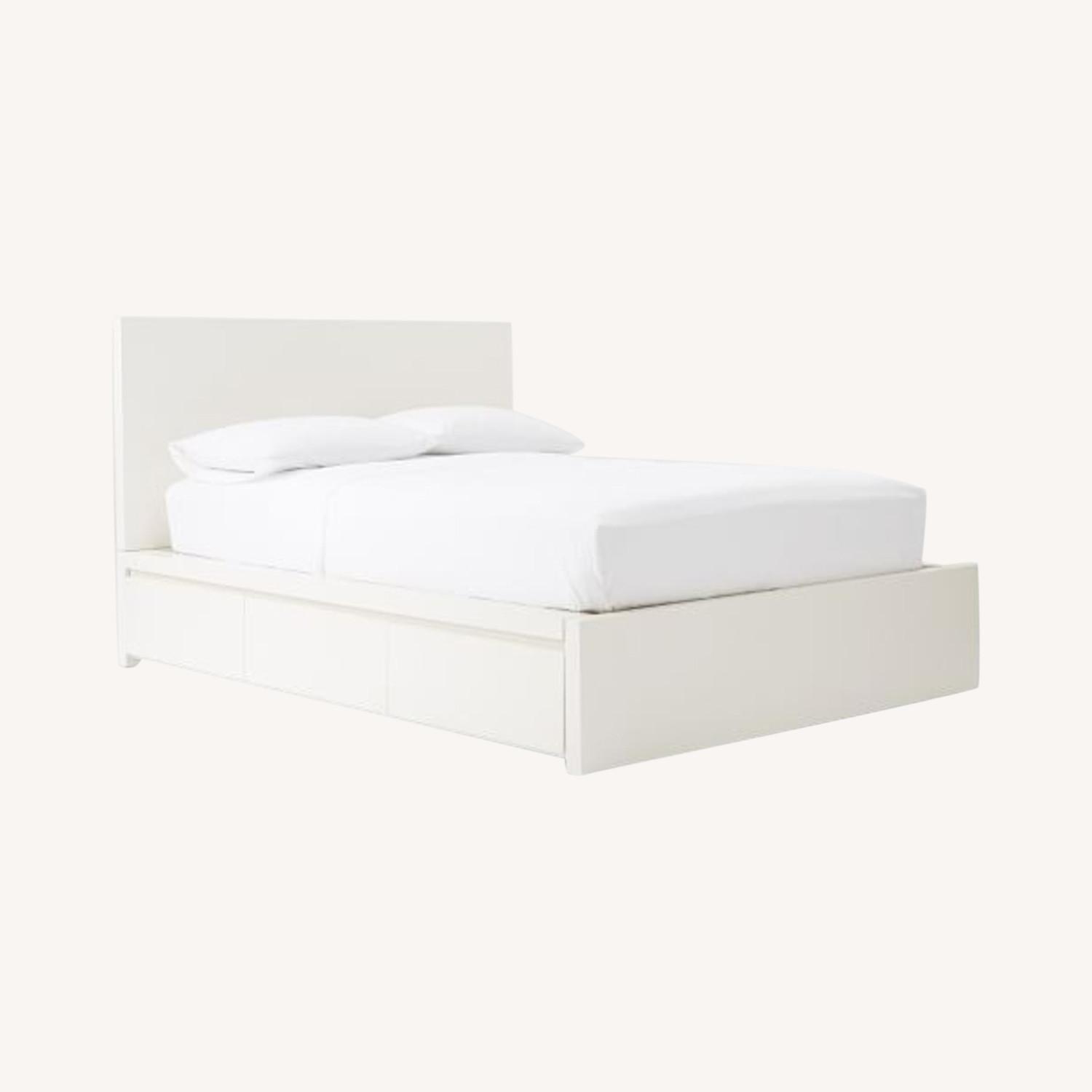 West Elm White Queen Storage Bed w/ 2 Side Tables