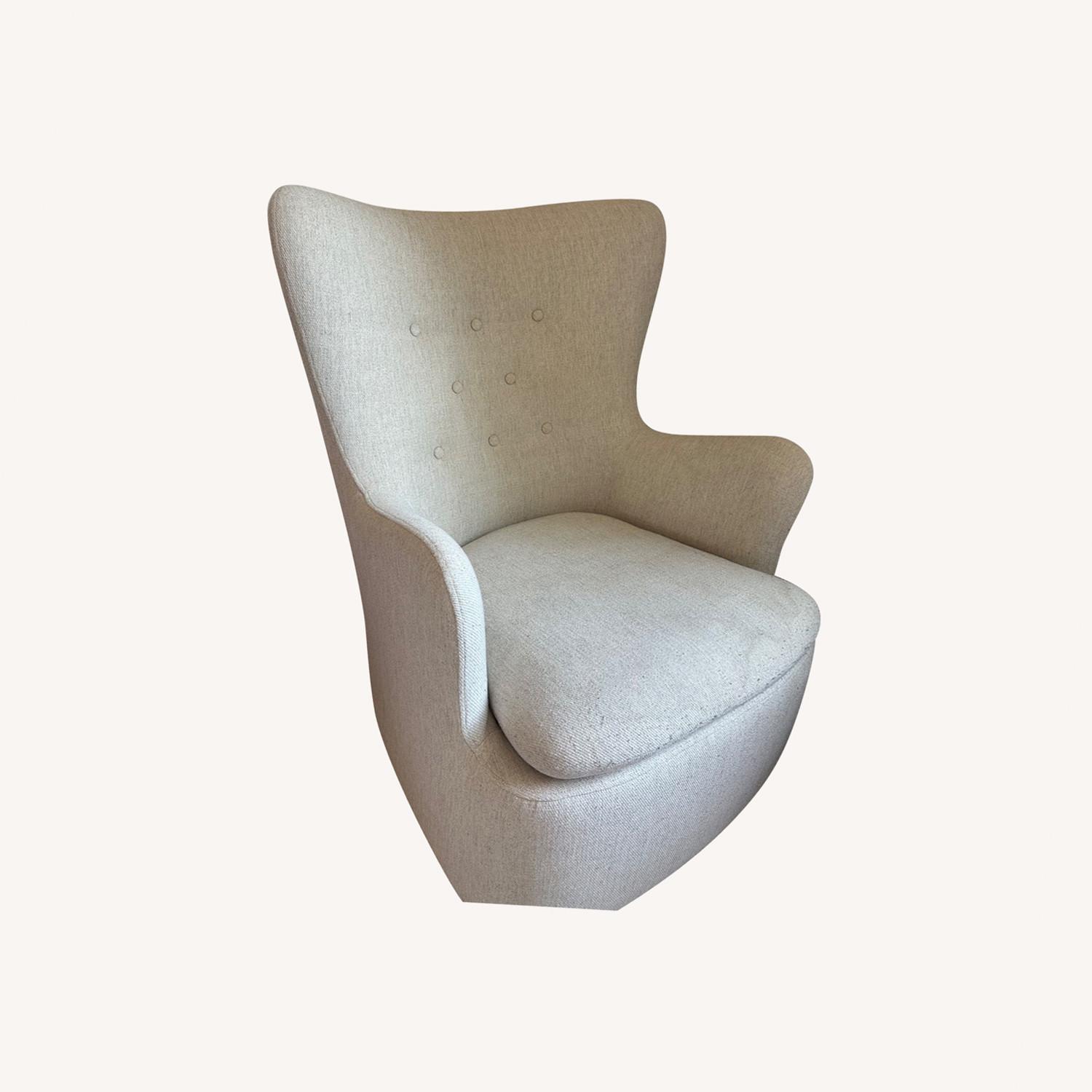 Seller's Notes:West Elm Niels Glider in Wheat Twill. Bought in 2019, good condition. 360 degree turns and glides back and forth. 29" deep, 29" wide and 39" tall. Originally $750. Smoke-free home.