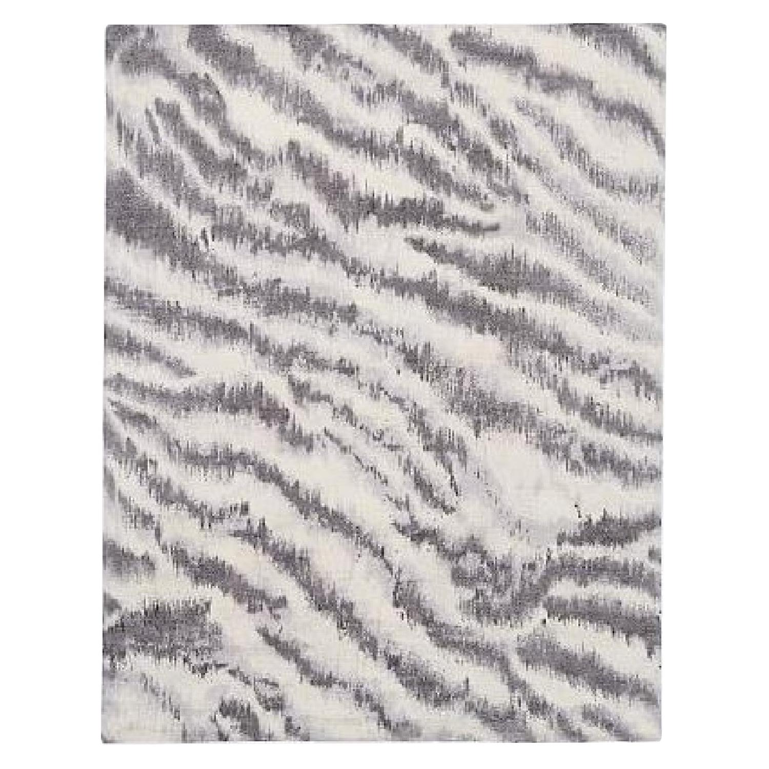 Seller's Notes:Hand tufted and printed, the Diffused Zebra Rug reinterprets an edgy animal print in blurred neutral tones. 62% wool, 38% viscose in Platinum. Hand tufted. 8" wide x 10" long; Rug thickness: 0.75"h
