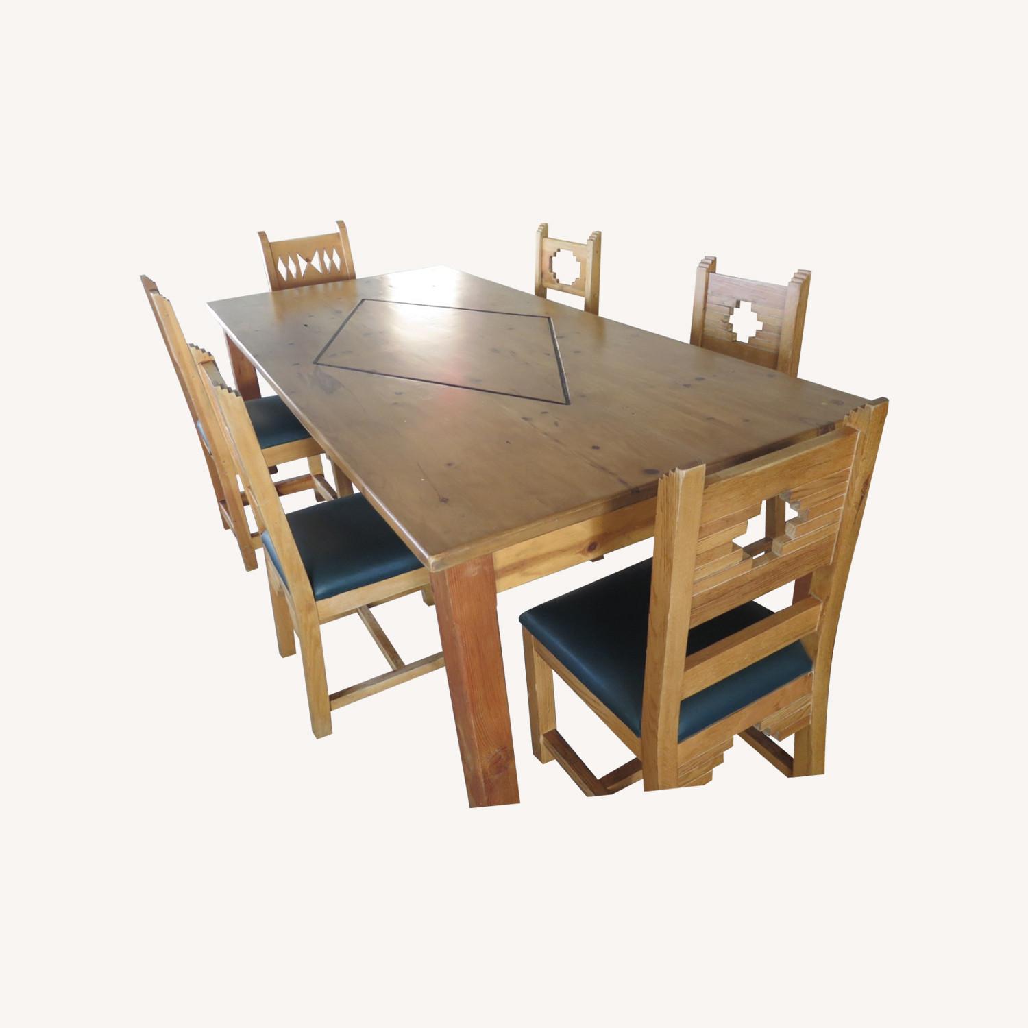 Seller's Notes:The table and chairs were used in my home for many years. They are in good condition. Nothing broken, wood can be easily re-stained. The chair seat is vinyl, there are 6 chairs.
