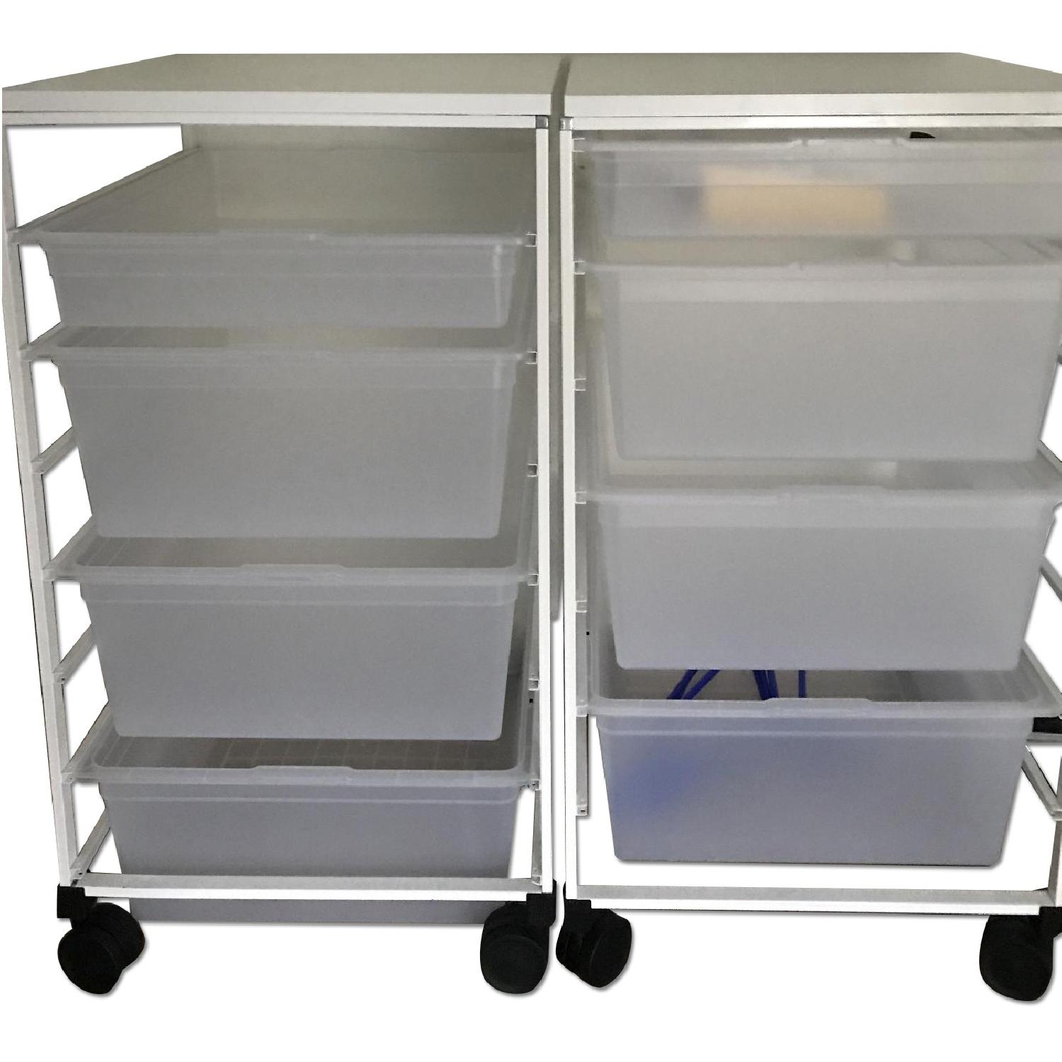 Seller's Notes:Two assembled White Cabinet-Sized elfa Plastic Closet Drawers, from the container store, used for one month only, they retail for $136 each. Dimensions: 14" x 17-1/4" x 29-5/8" h Attached is a photo of the drawers.