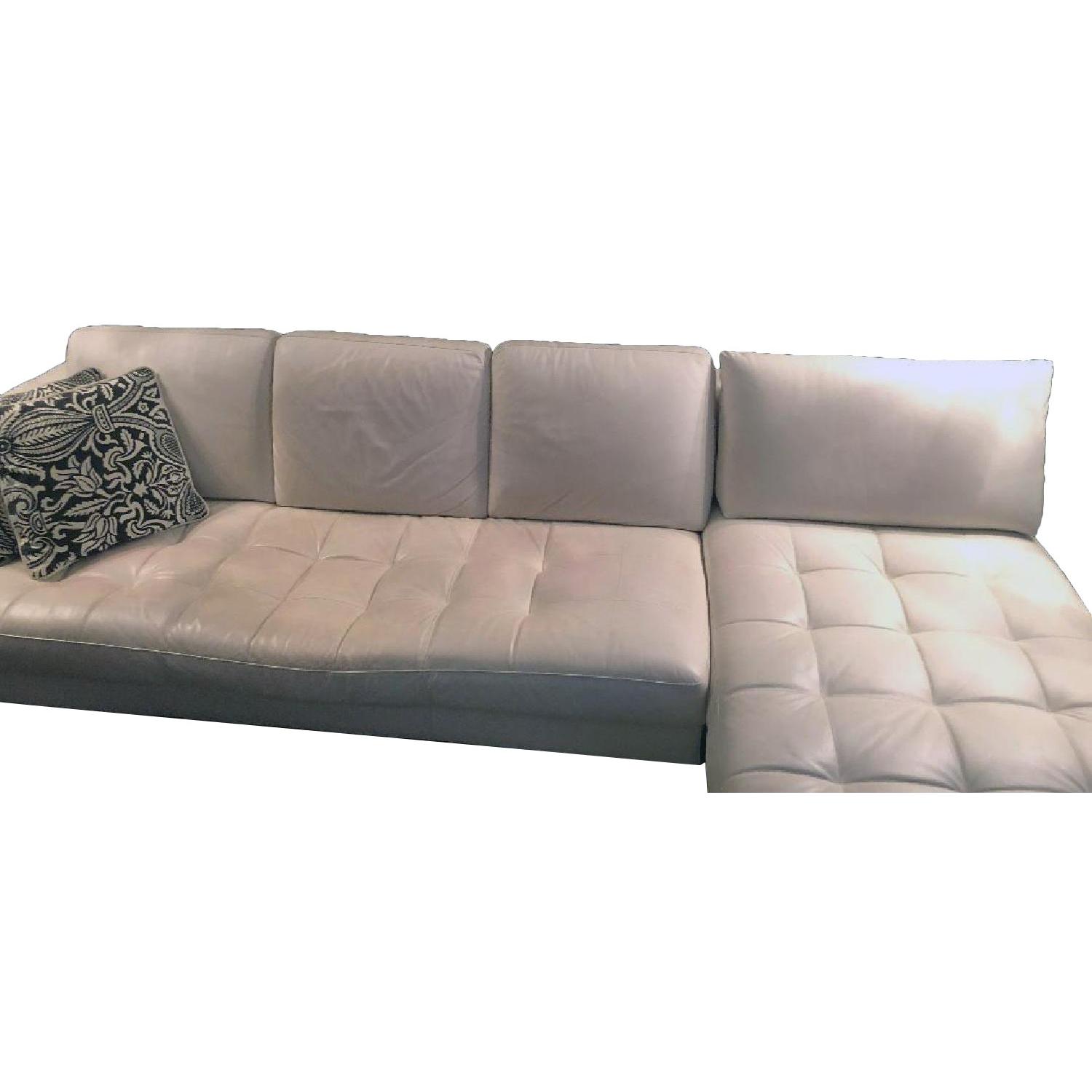 Seller's Notes:Beautiful Italian leather couch plus chaise (two separate pieces). Couch shows signs of wear (pink pillow stained leather) and there are nicks at bottom of frame from vacuum (not really visible). Chaise portion is pristine and perfectly clean.Super comfortable to sit on and definitely has lots of use left. Note that a professional cleaning should remove the stains (but no guarantee). Motivated to sell.