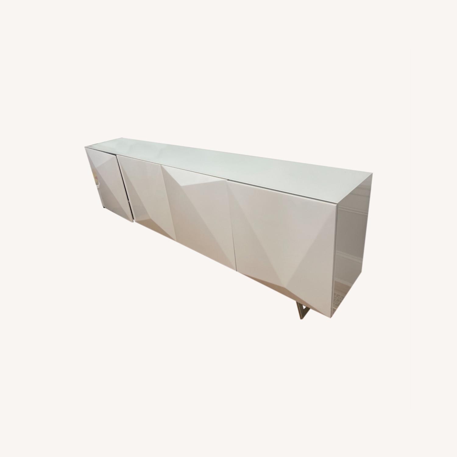 Seller's Notes:Large server with great deep shelving for storage. white lacquer asymmetric door panels. Real heavy duty piece not flimsy