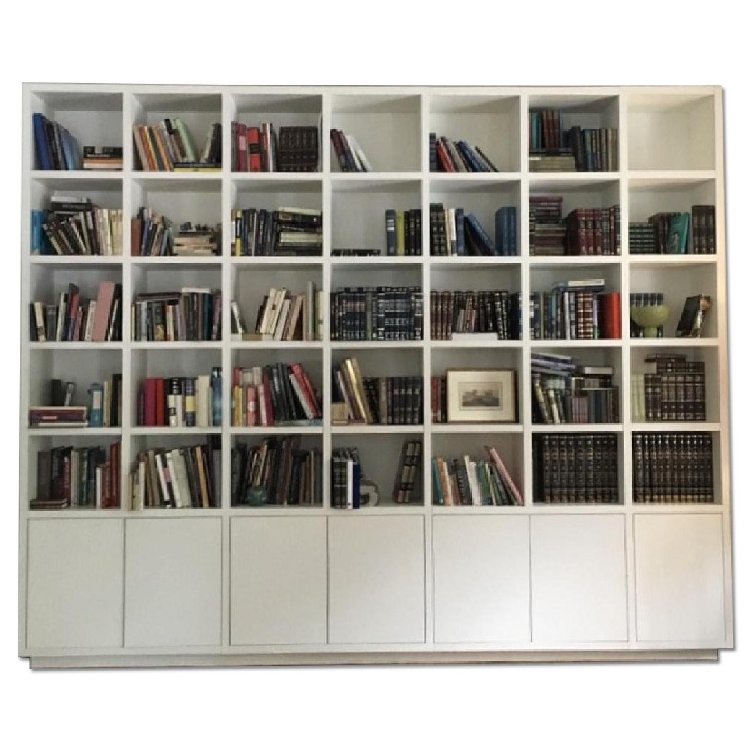 Seller's Notes:Custom white lacquer bookcase. Four years old. In excellent condition. Lower storage cabinets, two with maple roll out drawers. Never bought hardware for the cabinet handles. Our apartment is undergoing renovation so needs to be picked up as soon as possible from a doorman building on the upper west side, Manhattan. Has been dismantled into three sections and wrapped up in plastic by the seller.