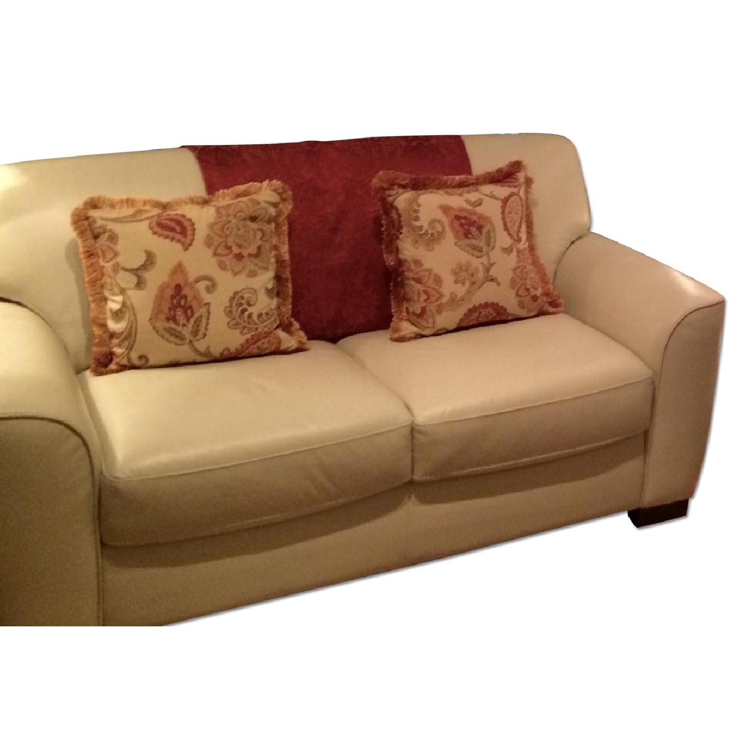 Seller's Notes:This immaculate white leather love-seat is truly in as-new condition. Modern clean lines with exacting design details and high end materials. Looks just as good from back as if does from front. High level of workmanship. Barely used, then properly shrink-wrapped and stored. Was treated in factory for stain resistance (was an additional special order cost). You will NOT be disappointed. Ready for pickup anytime. Suggested retail price of $1975 plus cost of protectant treatment.