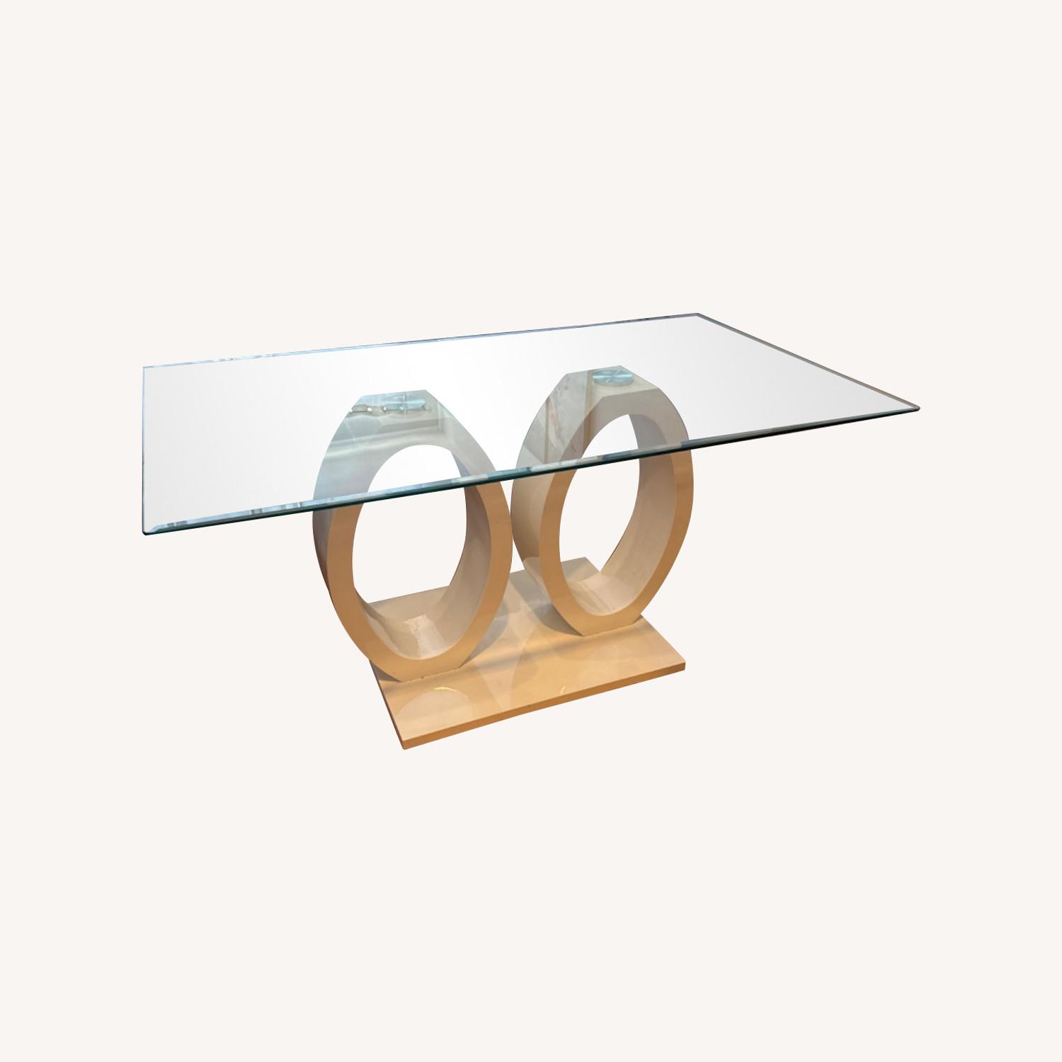 Seller's Notes:We bought this when we moved in and it was already used. It’s a great piece and has held up awesome. There are tiny scratches on the glass that aren’t noticeable and a minor blemish on the base- see picture. The table uses special wrench that we purchased that we can pass along to you if the glass needs tightening. It’s very sturdy and we have hosted 6 people at the table. Hopefully you can enjoy this piece as much as we have!