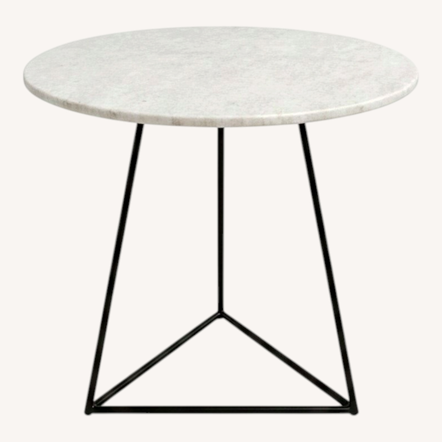 Seller's Notes:Beautiful side table, crafted in white marble and sleek metal. Excellent condition, showcasing its pristine surfaces and sturdy construction. Its elegant design would complement any living space beautifully. The combination of natural stone and polished metal creates a sophisticated and timeless aesthetic. This side table is a truly remarkable find.