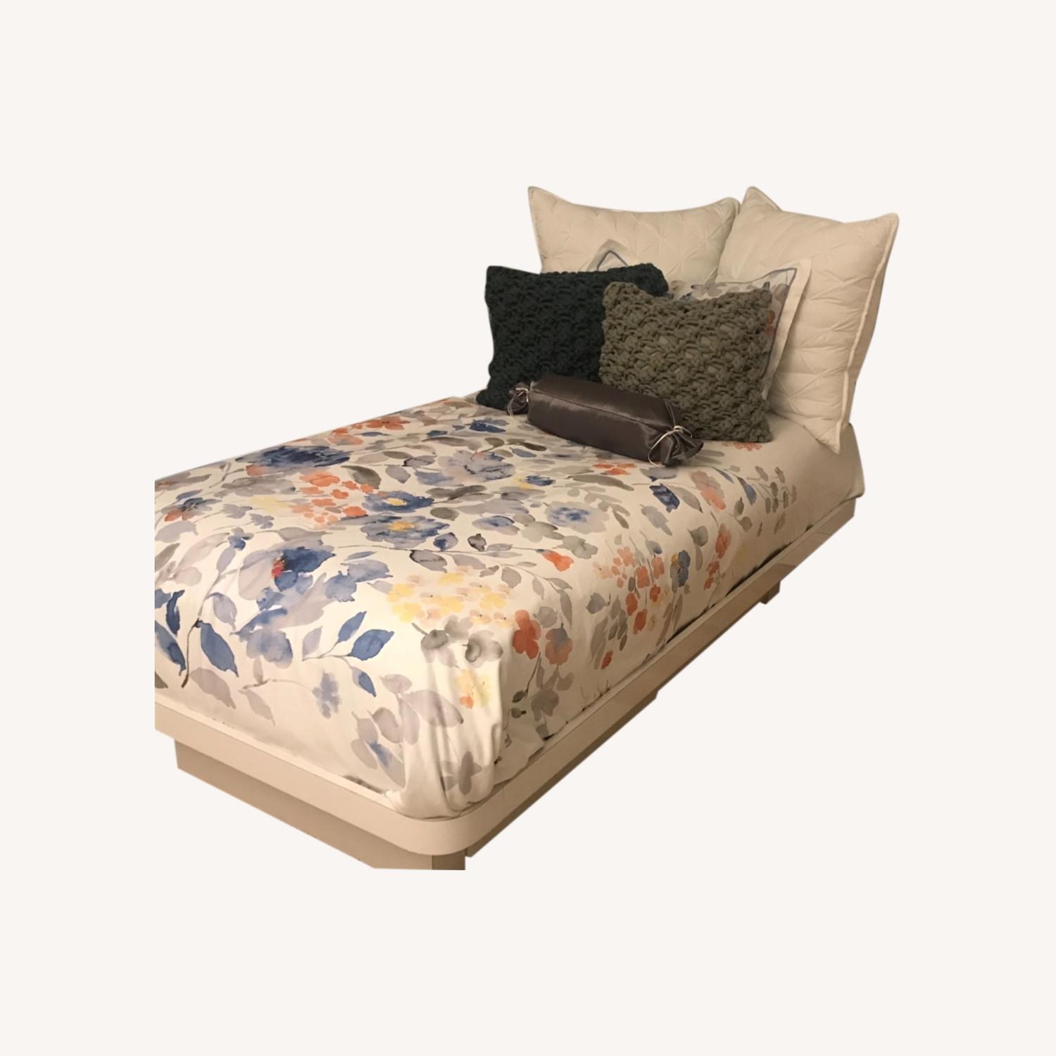 Seller's Notes:Shiny, white laminate surface. Easy to clean. Drawers pull out for storage beneath bed. Drawers do come out if necessary for cleaning/ vacuuming underneath bed. Platform disconnects from the base for easy removal and pick up and can be easily put together once it is in the room. In great condition.