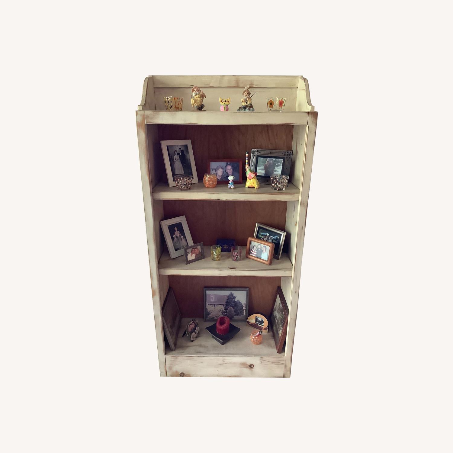 Seller's Notes:Beautiful white washed antique vintage bookcase with 2 adjustable shelfs. Great for pictures, collectables and books. A designer piece that adds class to an office or living room.