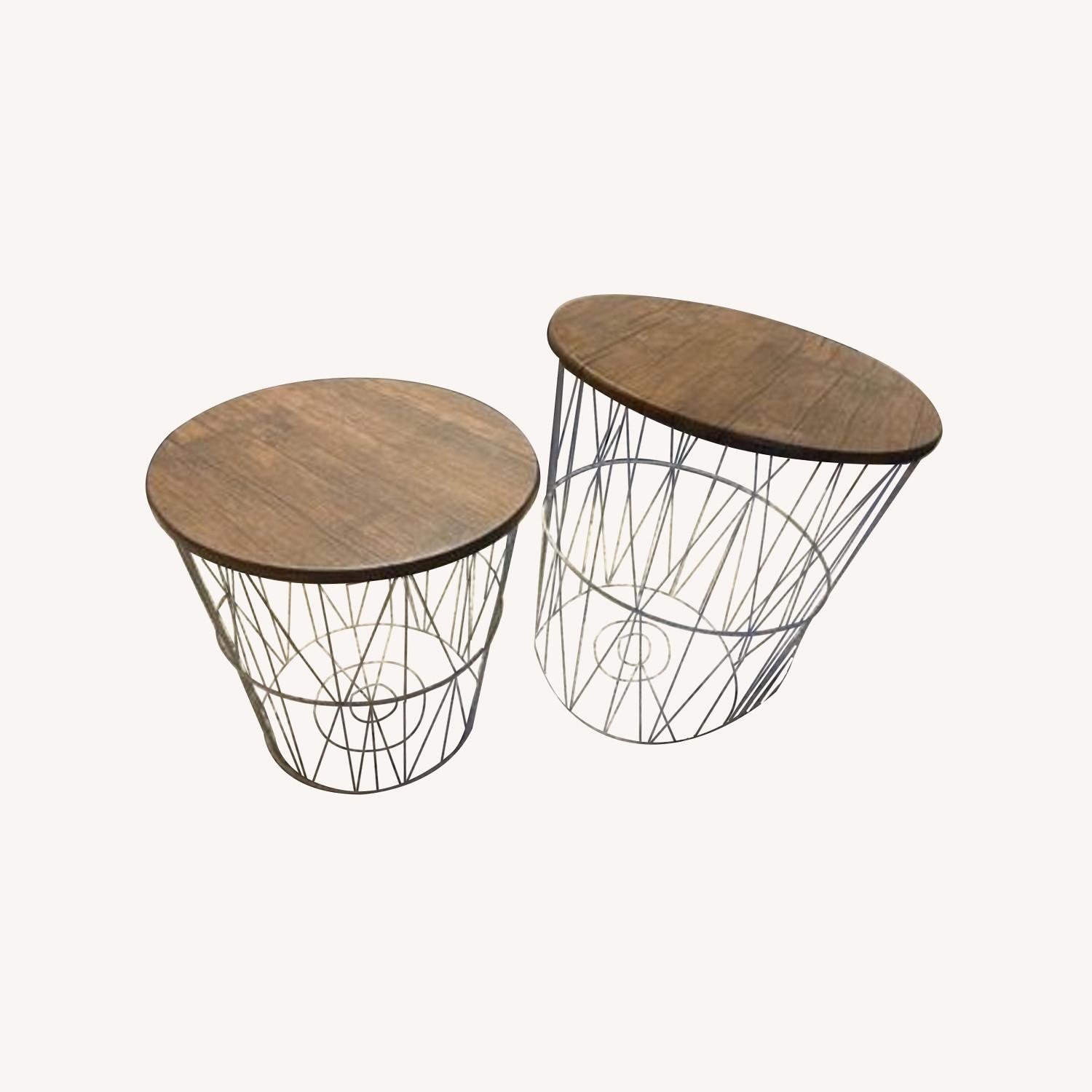 Seller's Notes:Round coffee table. Lids feature caps that lock it into place. Large basket 17.5 x 17.5 x 20.5 Small basket 11 x 11 x 16