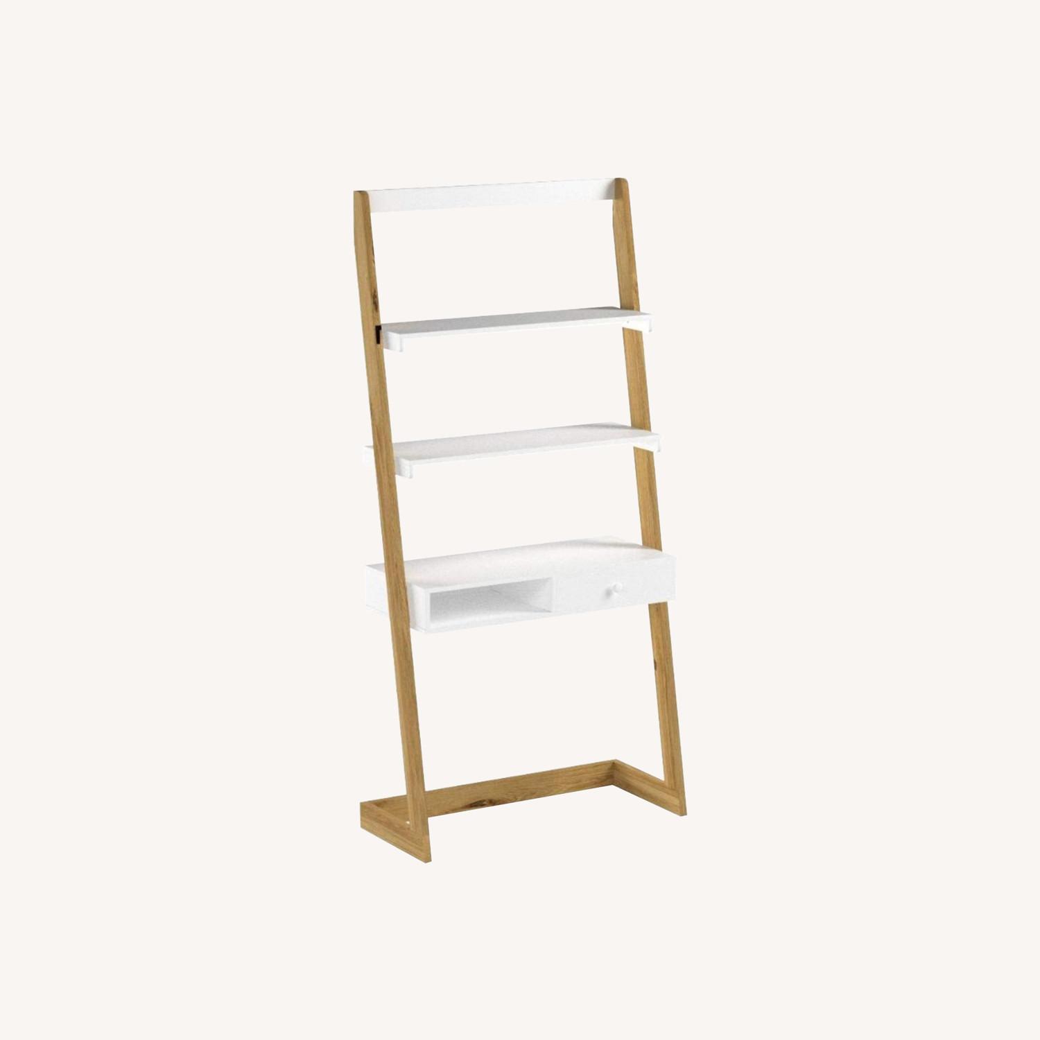 Modern two tone ladder design complements clean white surfaces with natural hardwood side beams. Simple and easy assembly with all hardware included
