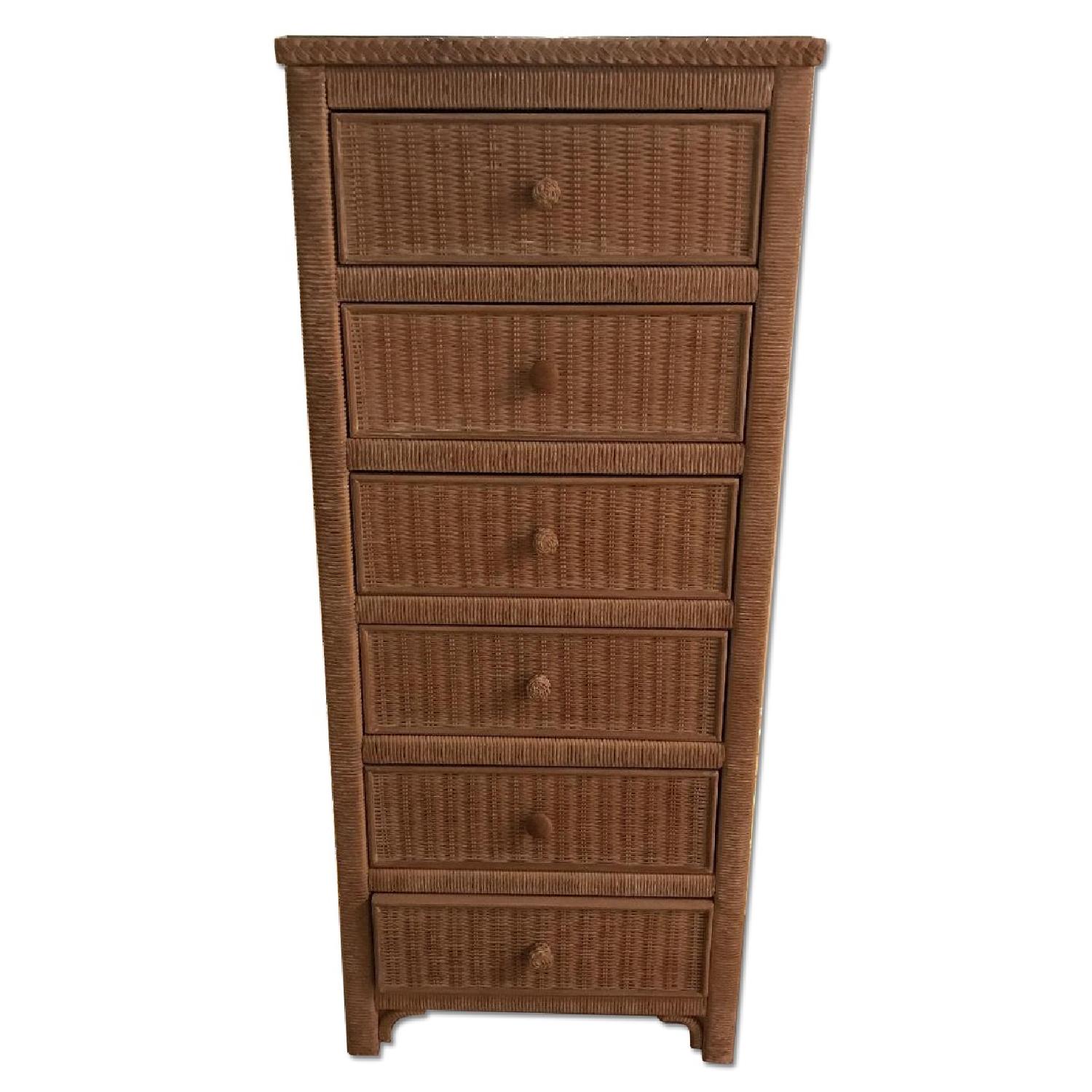 Wicker 6 Drawer Dresser w/ Glass Top