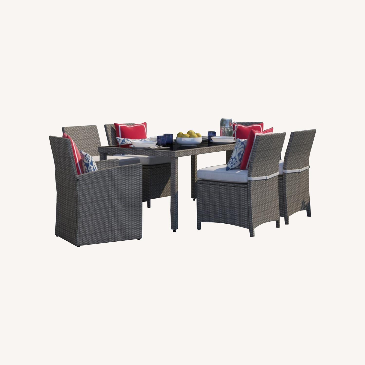 Seller's Notes:A great and sturdy set that fits any patio style! Two chairs have arms and the other four don't but all have seat cushions.