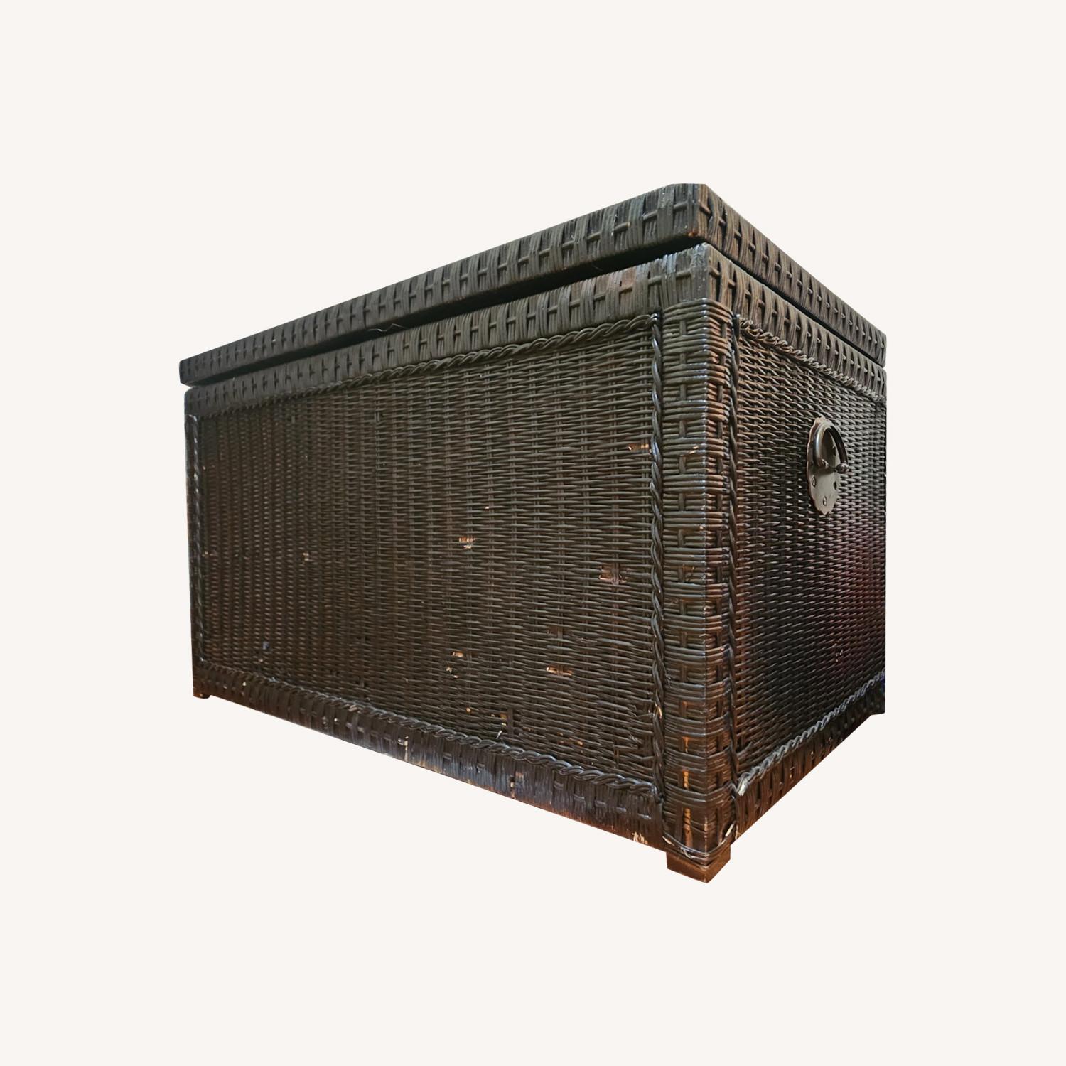 Seller's Notes:Giant Pier 1 wicker trunk up for grabs! It's had some love but still would make a great accent or storage piece for anyone's home! Large and clean coming from a bug, pet and smoke-free home. Specs Length (Left to Right) - 36 in Height (Top to Bottom) - 20.5 in Depth (Back to Front) - 20.25 in Pick up would be awesome! Note you'd need 2 people as it's quite heavy