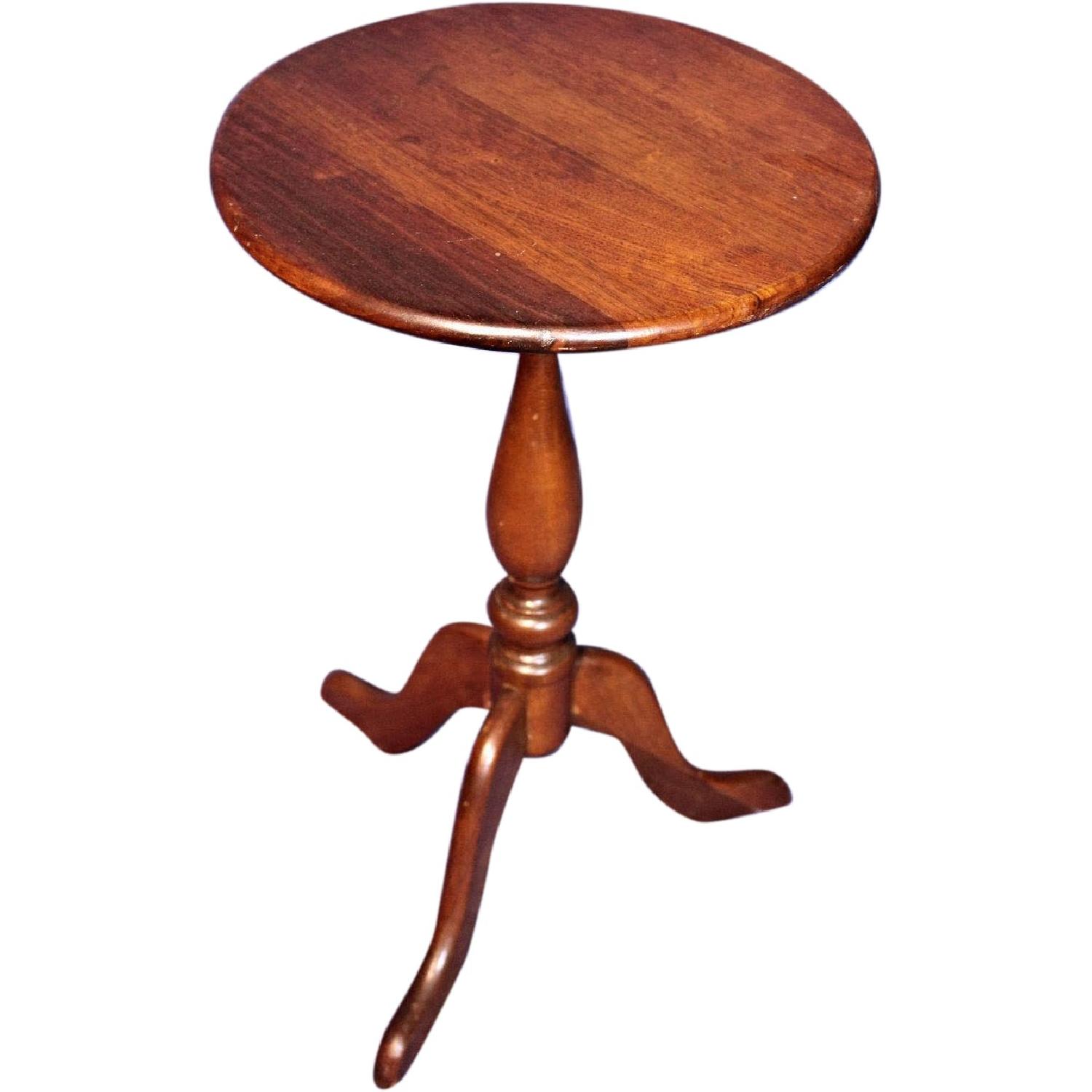 Seller's Notes:This elegant antique WILLETT (Louisville, KY) solid American black walnut lamp table is a real beauty. Signed on the underside. Measures approx. 21” H x 14 1/4” W (legs). 13” table top diameter. From Willett advertisement: "Simply delightful, because it's delightfully simple! Willett designers achieve warmth without ornamentation... clean lines without severity. Then skilled craftsmen fashioned it from lovely solid cherry. That's why decorators and editors agree... no other contemporary furniture goes so well in both modern and traditional homes." Adding exclusivity to your décor, this lovely table offers an elegant and stylish look wherever placed. It is unique in its structural integrity and its perfect functionality, exhibiting blending of creative style balanced with careful proportion and scale. The thoughtful design and outstanding detail combine to create an exceptional piece of fine furniture, one that tends to receive comments and compliments as long as you own it. Every aspect of this table displays craftsmanship and skill beyond the level of common artist, and it will become a treasured heirloom item for your family for future generations. *****Treasure Island Interiors***** Consider H. Willett and his brother, W.R. Willett, were in the lumber business before Consider founded the Willett Furniture Co. in 1934. At one time, they were reportedly the largest maker of cherry and maple furniture in the United States, with a 1946 profit equivalent in today’s value of $2.6 million dollars. Willet exhibited its wares at the Chicago Furniture Show in the late 1930s and 1940s, and by the 1950s, achieved national status advertising in Better Homes and Garden, and selling to markets in Illinois, Wisconsin and Michigan. In 1956 and 1957, it advertised in states as far away as California and Oregon. The furniture peaked in popularity after World War II, between 1946 and 1952. Louisville architect Fred H. Elswick, who designed the Kentucky Fair and Exposition Center, added to its luster by designing collections in 1950 and 1951. At its height, people had to wait a year to receive their furniture. Hard times set in as competing manufacturers began making quality furniture for less. By 1962, the Willett Co. was bankrupt. Today Willett furniture becomes exceedingly popular among serious collectors and lovers of top quality American made pieces. Don't miss out on this opportunity to make this stunning piece of history yours today! ****Treasure Island Interiors**** Considering its age and rarity, the table is in very good condition. Minor signs of use consistent with normal, residential employment it has seen over the years. Appears to have an old restoration to one leg. Stands sturdy and secure; the quality and craftsmanship speak volumes. The pictures are of the actual items you are purchasing, so please look at them closely to confirm its condition and outstanding appearance, as they are part of the description. With its beautiful aged patina, this rare table possesses fantastic vintage appeal. It is truly a treasure and an investment for the generations. Vintage items are incredible pieces of history and are always in style. They also offer a meaningful way to contribute to the environment by recycling pieces from the past. Comes from a clean, non-smoking, pet-free home. This wonderful table represents spectacular value for money, and we have no doubt it will serve and delight its new owner for many years to come.