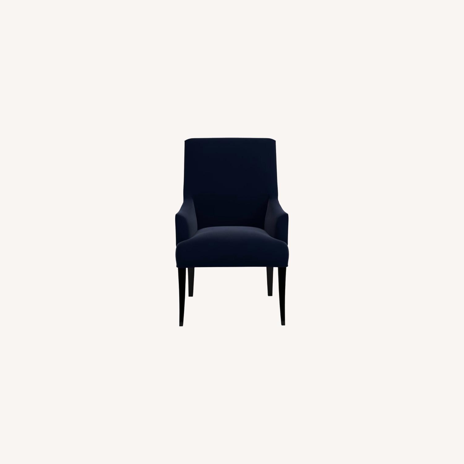 Seller's Notes:Brand new pair of gorgeous Belvedere Dining Armchairs ! We ordered two too many !! They have never been used . Do not miss out . They are upholstered in signature blue velvet with ebony legs . They can also be used as desk chairs or reading chairs . They are super versatile.