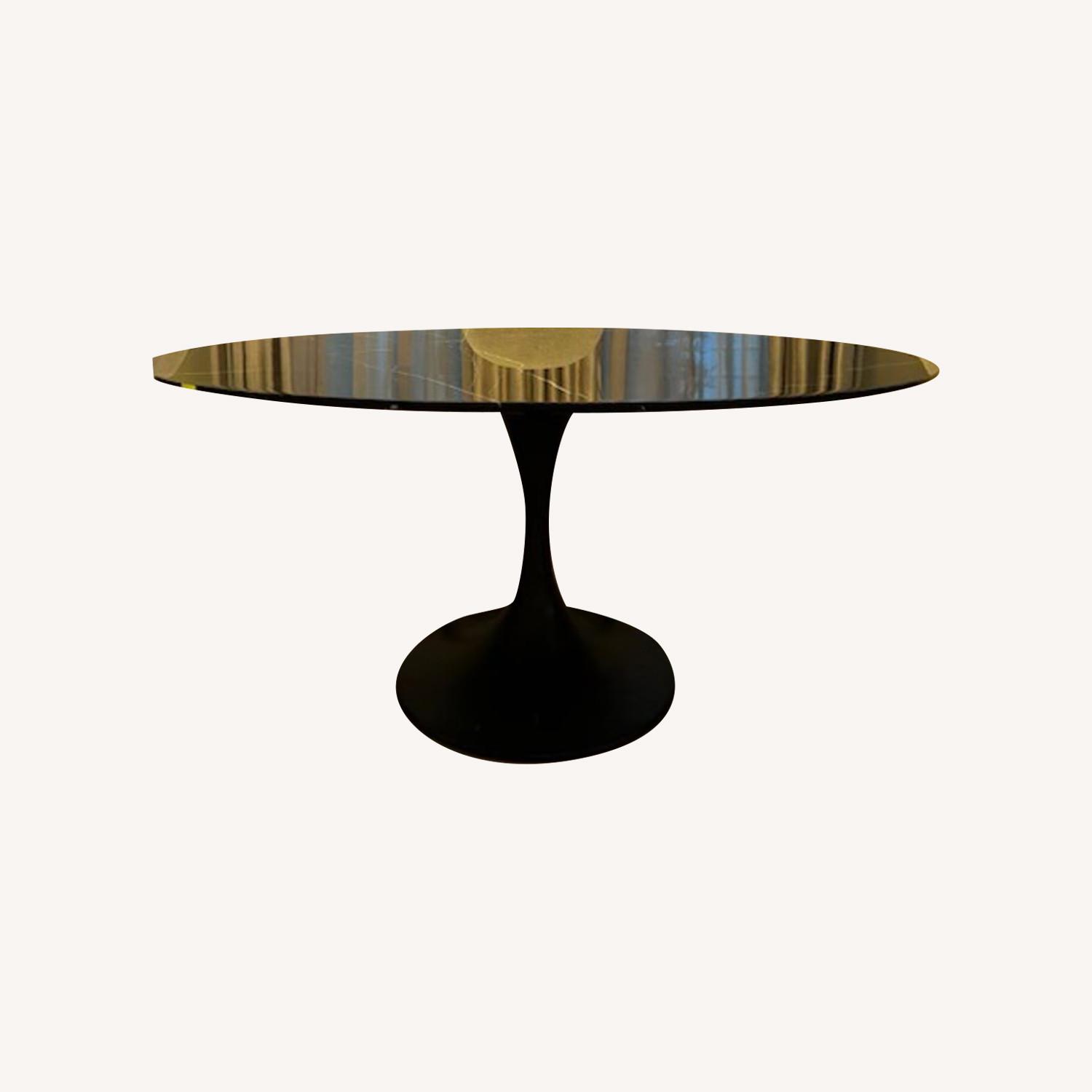Seller's Notes:Stunning black marble with dark bronze tulip base dining table. Fits 6 comfortably. Very good condition some minor blemishes on top that are hard to see. Moving and have to sell.