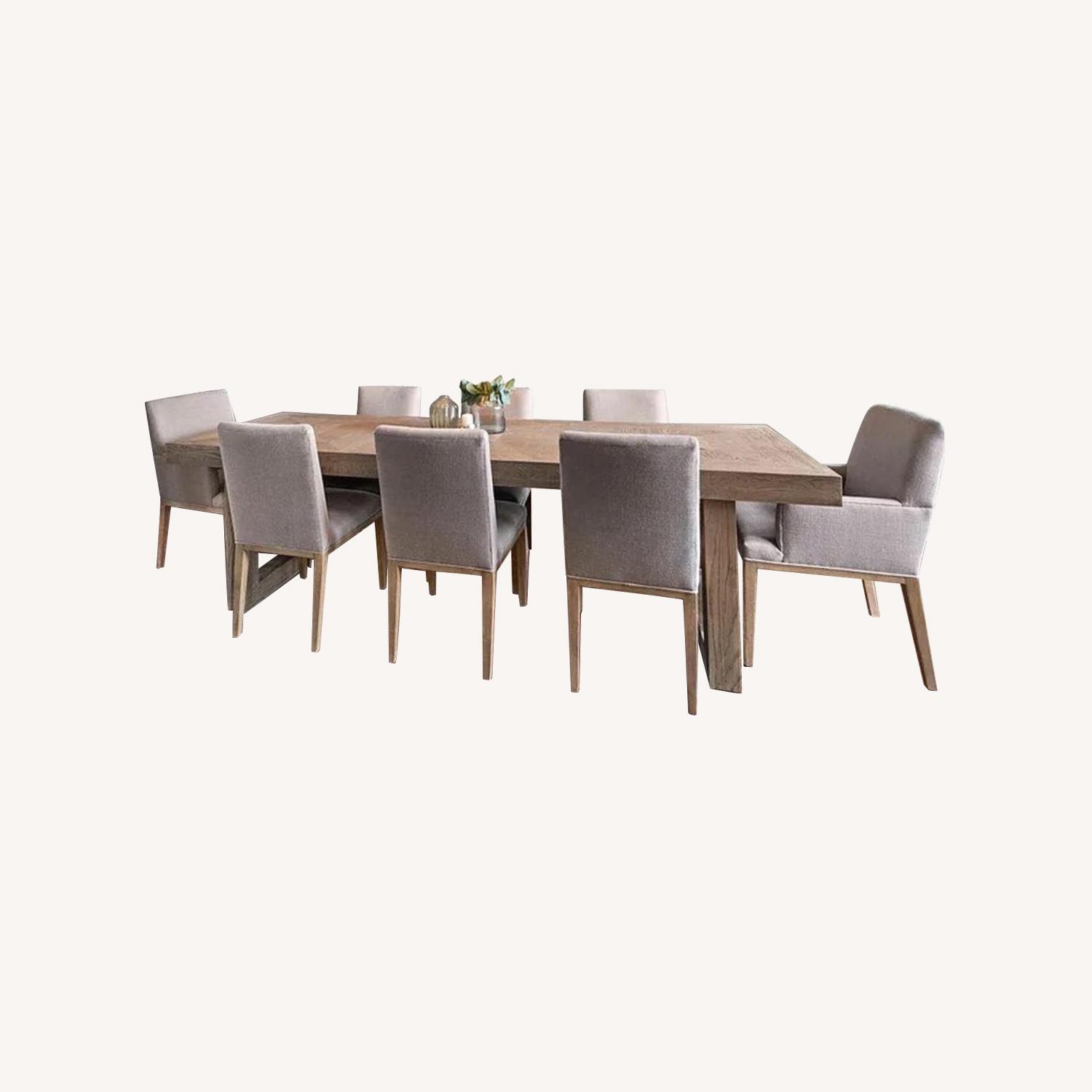 Seller's Notes:We are moving and our formal dining room table will not fit in our new home. This Williams Sonoma Venice Dining Room table and 8 Austin Chairs (2 w/ arms) was purchased in 2019 and hardly used. Original purchase price for the lot was ~$6,500.