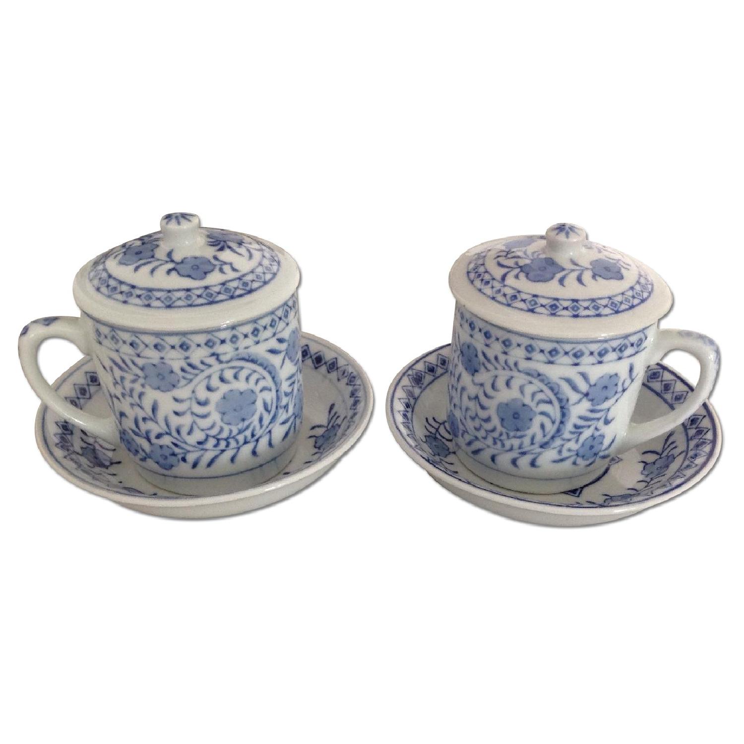 Seller's Notes:Chinoiserie chic. There are few styles you can say are 300 years old and as popular as ever! Asian-influenced Chinoiserie elements add a sense of history and worldly sophistication to any space. Bring home a little Chinoiserie chic with these timeless porcelain pieces in lively blue and white. For sale: one item has matching cups, lids and saucers for service of up to 6. A lovely addition to the home of any Tea aficionado. The item is in mint condition. Practically never used. Make an offer.