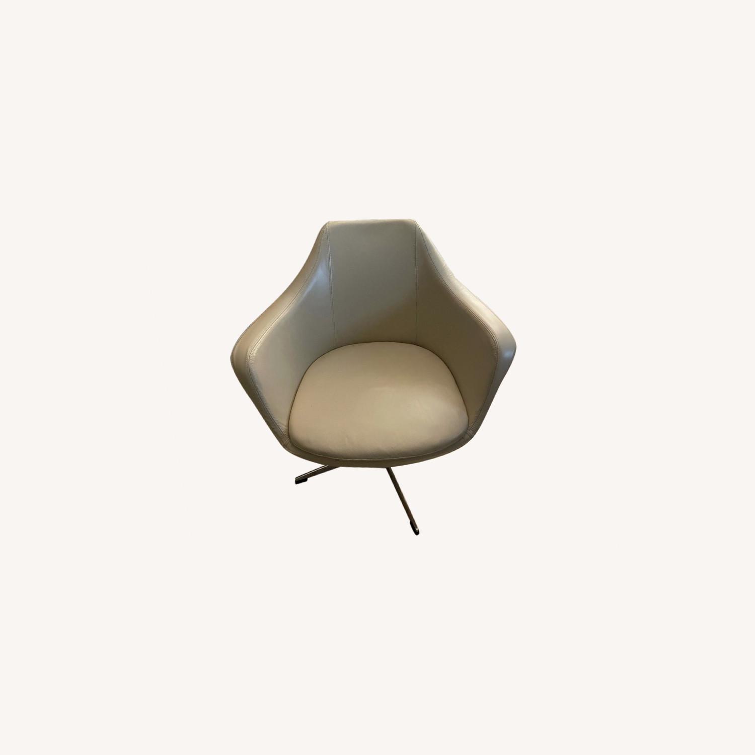 Seller's Notes:Purchased from Williams Sonoma last year. Ivory leather tulip shaped task chair. No wheels.