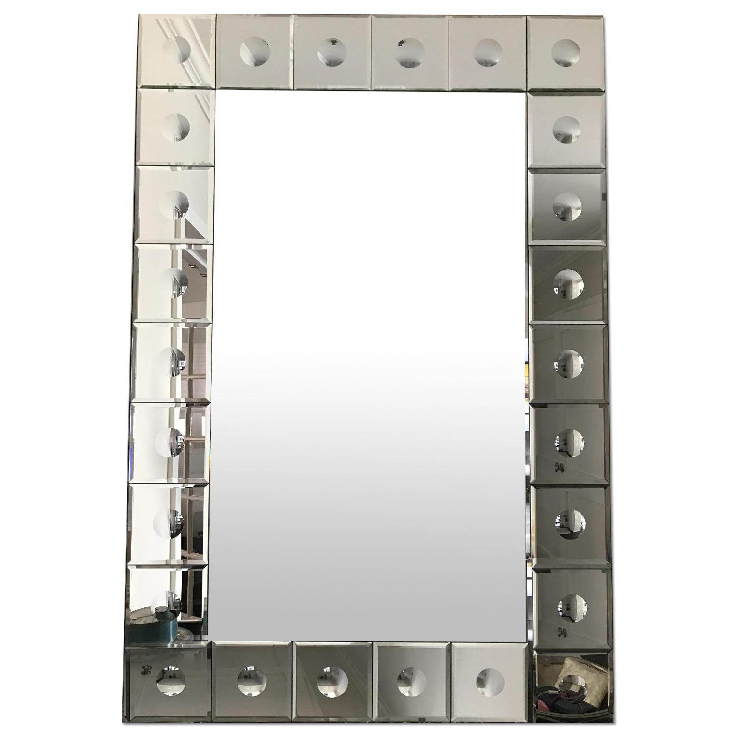 Seller's Notes:30"W x 45"H overall. Framed in hand-placed mirror tiles with dots inside squares. Backed with black-lacquered engineered wood. Hanging plate mounting hardware on back. Hangs vertically or horizontally. mint condition. no blemishes , scratches or otherwise