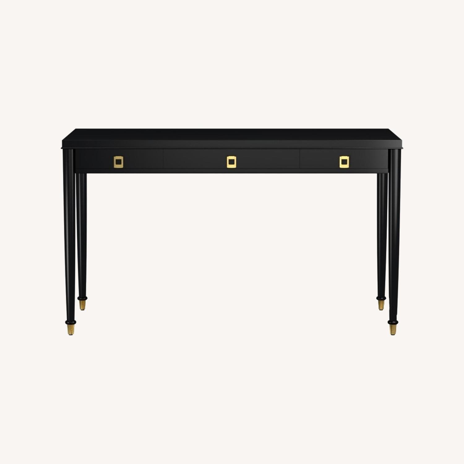 Seller's Notes:We loved this elegant 1940s inspired writing desk with brass hardware from Williams-Sonoma Home, but we moved and it no longer fits in our space. It has some minor scratches and scuffs, which have been touched up.