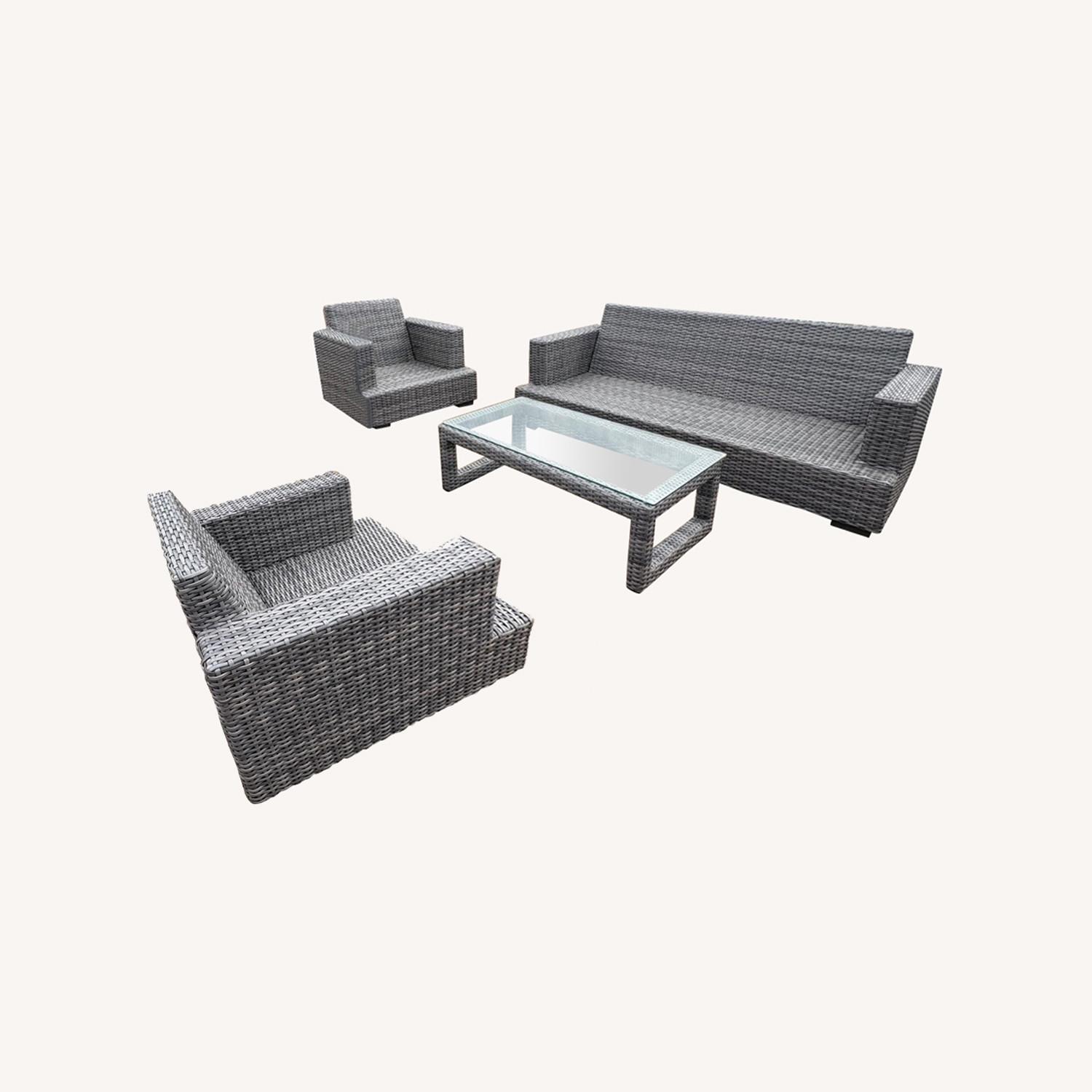 Seller's Notes:This is a beautiful outdoor set—perfect for your patio or any outdoor space! It’s incredibly comfortable while still being practical for city living. We’re including all the pillows, and while the covers could use a wash, everything is in great condition overall. We have had it for 3 years and are now moving to a place with no outdoor space :( Make me an offer! Would love to find it a great new home. You get a sofa, two chairs and the coffee table that comes with it.Dimensions: Sofa 84 wide, 37 deep, 24 high , chairs 37 wide 36 deep, coffee table 24x48