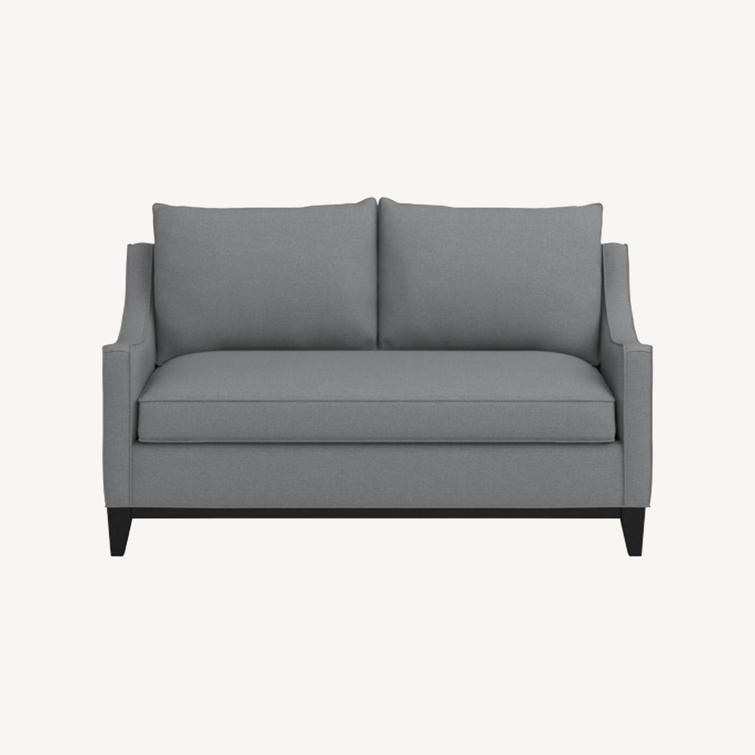 Seller's Notes:Loveseat perfect for NYC pied-á-terre. Down-mix cushions in Sunbrella grey fabric. Excellent condition.