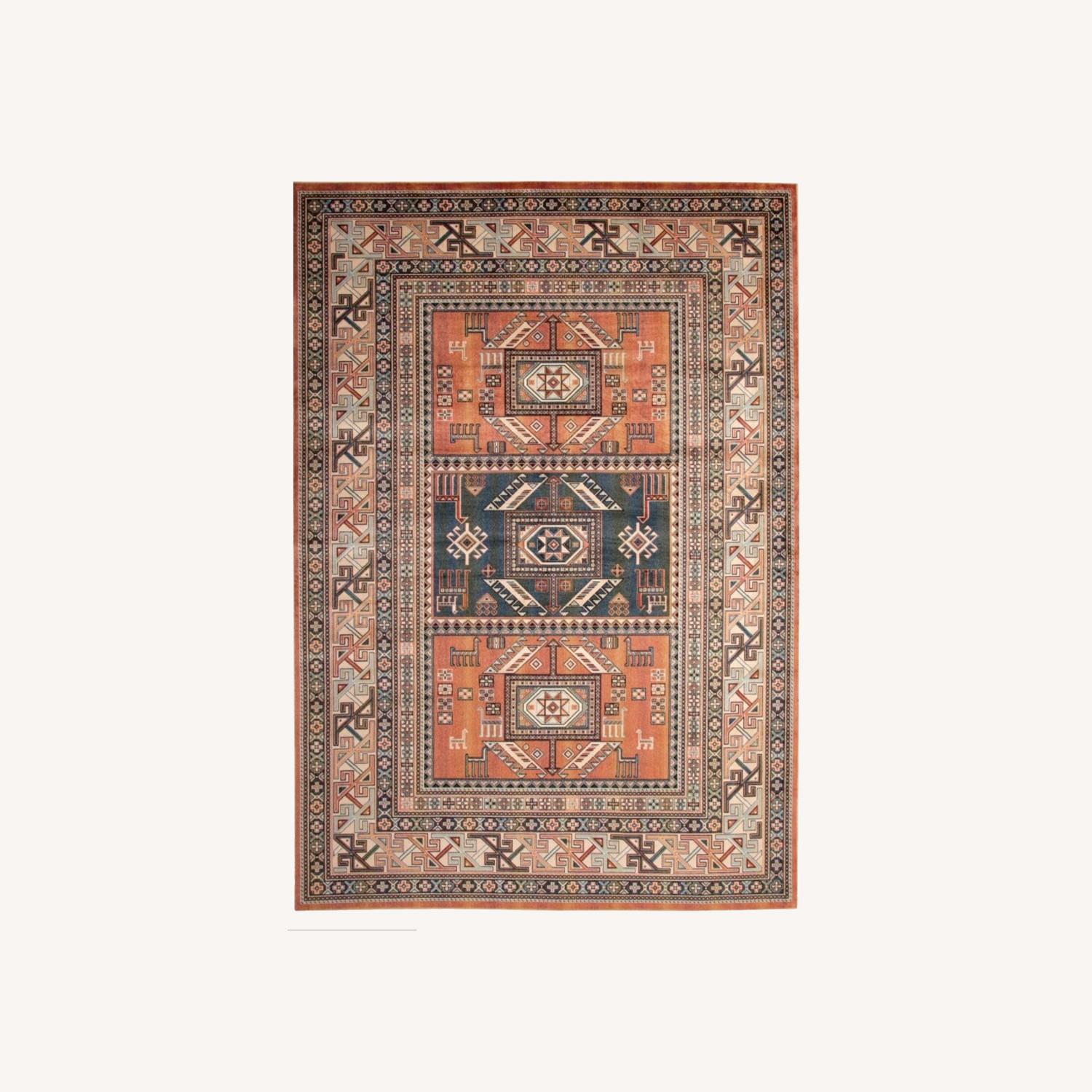 Seller's Notes:Selling my popular Sonoma Collection 7067 silk man made rug. Made in Belgium from silk viscose yarns and features the look and feel of real silk. I opened the plastic wrap to make sure it was the right color when I ordered it, but it was never used. It was stored and kept in its original plastic wrap. I’m moving and have no use for this rug. I originally paid $300.00 for this rug. Pile Height: Flat Pile Color: Blue, Ivory, Multi Origin: Belgium Sizes: 5'3"x 7'6"