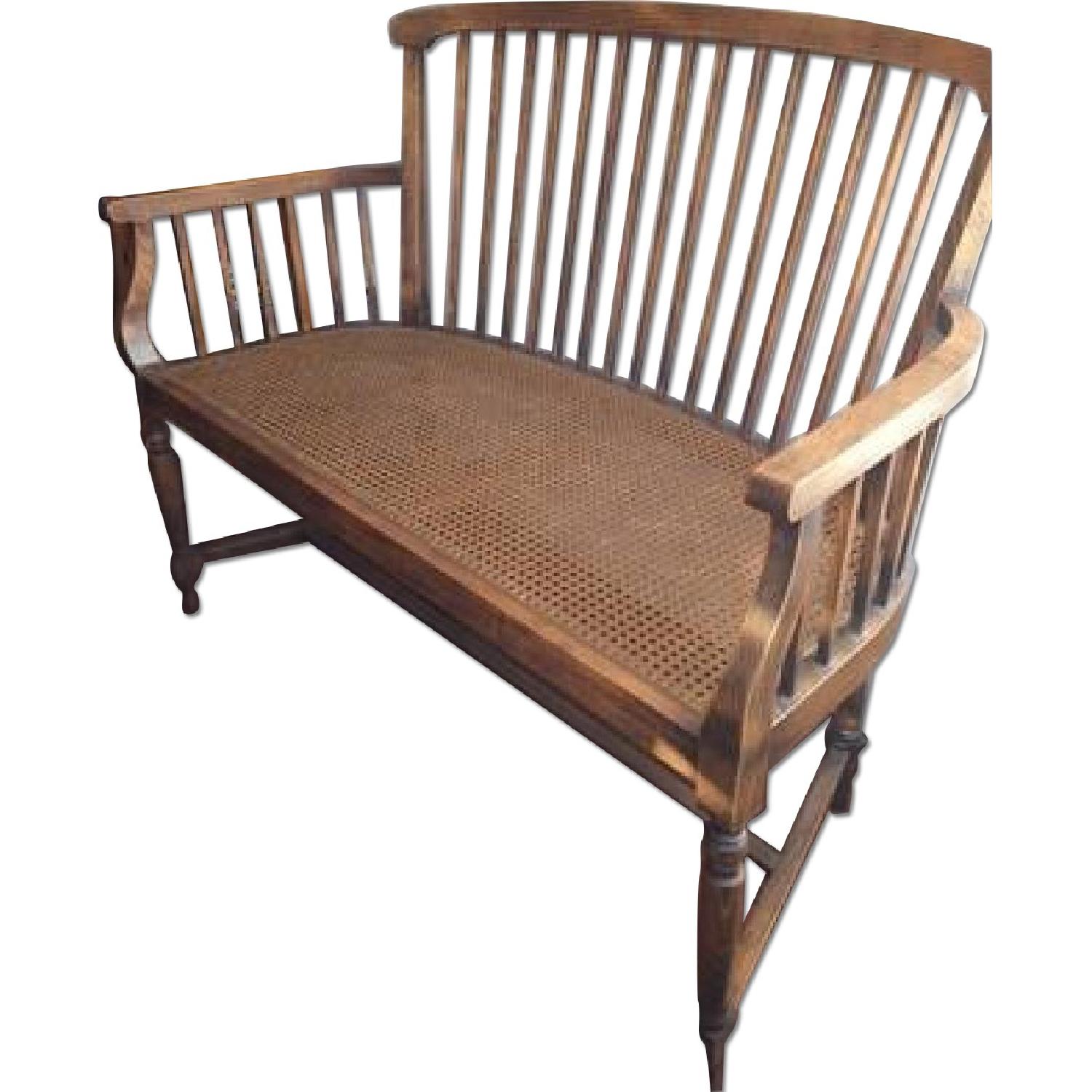 Seller's Notes:this is a lovely wood and wicker indoor or outdoor seating set, no longer available at williams sonoma home. dimensions of the bench noted above are approximate.