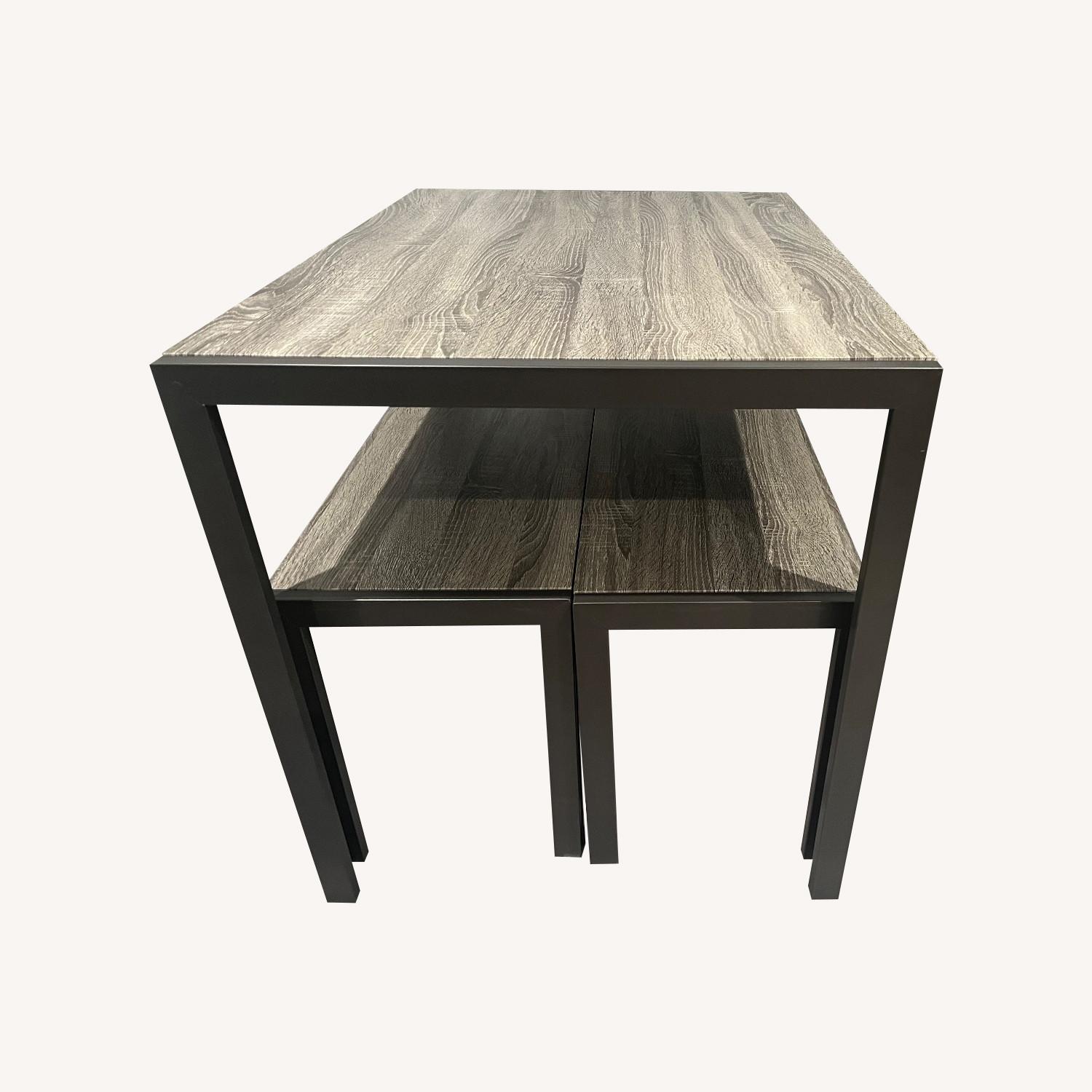 Seller's Notes:Beloved 3-piece dining set that's perfect for a small apartment, now out of stock on Wayfair. Benches slide underneath the table to create extra space. I moved mine away from the wall whenever I had guests over. Some scratches on the legs due to sliding the benches back and forth and some discoloration on the table from a pan that was too hot. Hate to let this go, but I'm moving to a different apartment with an island in the kitchen so won't have room for it.