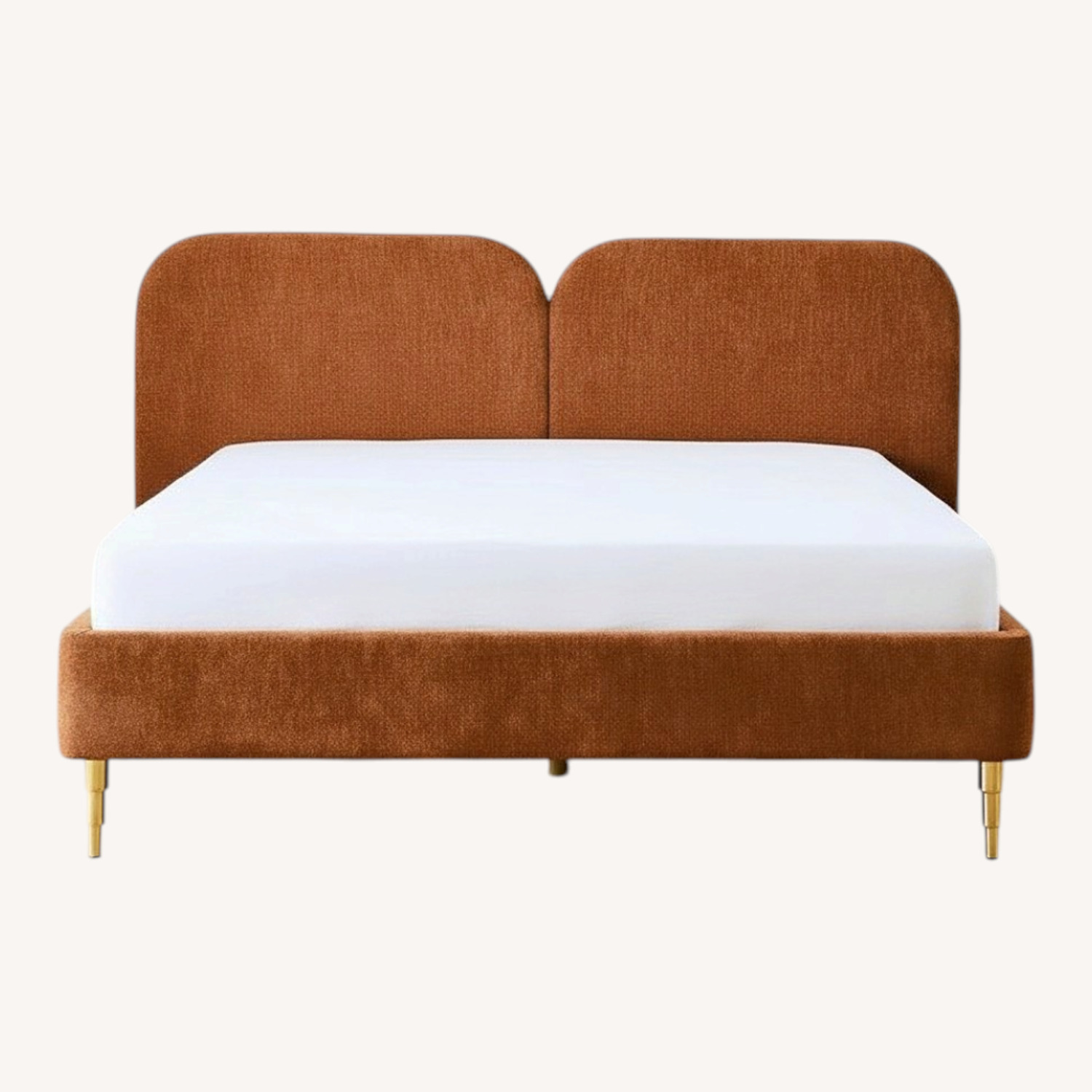 This upholstered platform bed is a unique design concept with a simple and elegant style. It will add irresistible charm to your bedroom space, easily adapting to a wide range of interior styles. The wide headboard is filled with high elasticity foam and covered with high quality linen fabric, bringing you more comfortable leaning support. The bed frame is made of selected solid wood and engineered wood, with a solid structure and durability. Metal plating process to create the bed legs, both practical and aesthetic. No additional springs are required, and the convenient slats and adjustable center support leg provide strong support and smooth support.