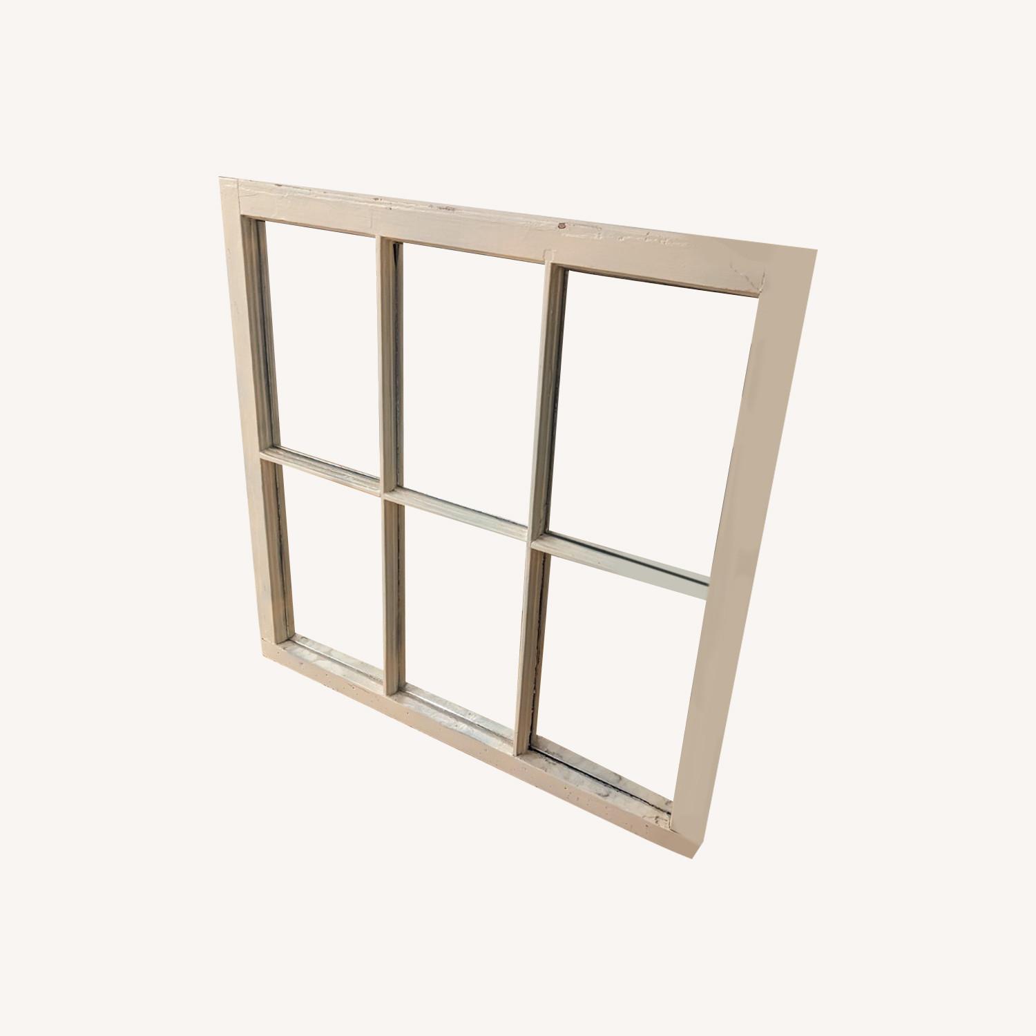 Seller's Notes:Farmhouse chic wall mirror made from vintage window pane. Wire hanging behind.