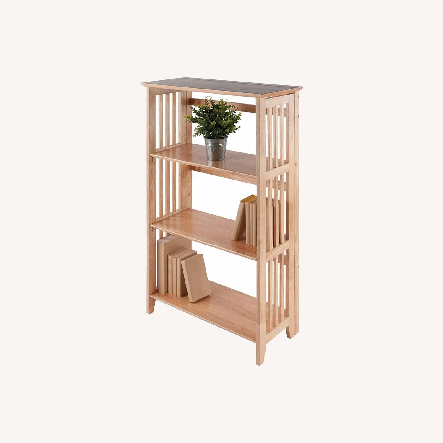 Seller's Notes:Great shelf which offers flexibility, helpful when you need to accommodate design/space layout changes. Great for working from home, and organizing books etc for back to school. Winsome Mission Solid Wood 4-Tier Foldable Bookcase Shelf Classic Display Storage Natural Finish Stand Storage Organizer Rack Shelf Type - Wood Material - Wood Shape - Rectangular Item Dimensions LxWxH 26x12x42 inches