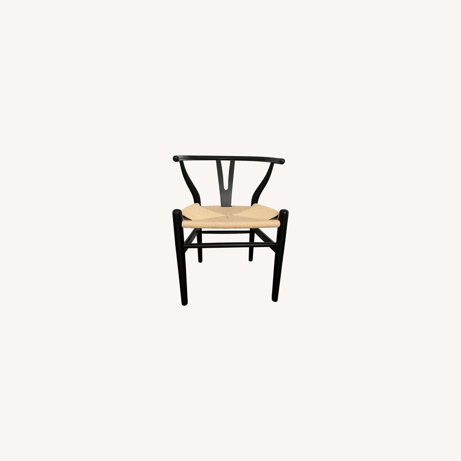 Seller's Notes:The Wishbone chair has been one of the most popular pieces of modern design for years and remains a timeless classic for any home. This reproduction of a Hans Wegner design is in a striking black wood with natural seat and will complement any table. The single piece backrest is traditionally handmade by a woodworking technique of steam bending for the purpose of making it both strong and comfortable. Selling set of 3 chairs, barely used. Purchased 1 year ago from byBESPOEK: https://bybespoek.com/product/wishbone-chair/ Weight 11 lbs Dimensions H30.3 in × W20.9 in × D20.5 in Seat Dimensions H17.7 x W16.5 x D15.7 in Backrest Height 14 in Material Beech, ash, oak with Danish paper cord seat Base Material Beech, ash, oak Assembly Requirements None required, comes fully assembled