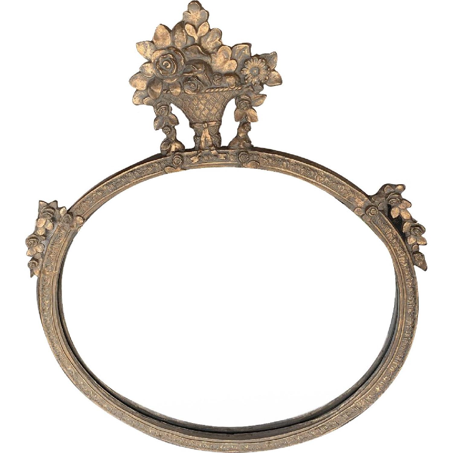 Seller's Notes:Wisteria French gilded bouquet mirror Measurements from very top to bottom and then across. Mirror is round almost oval. Beautiful hold detail and very well made.