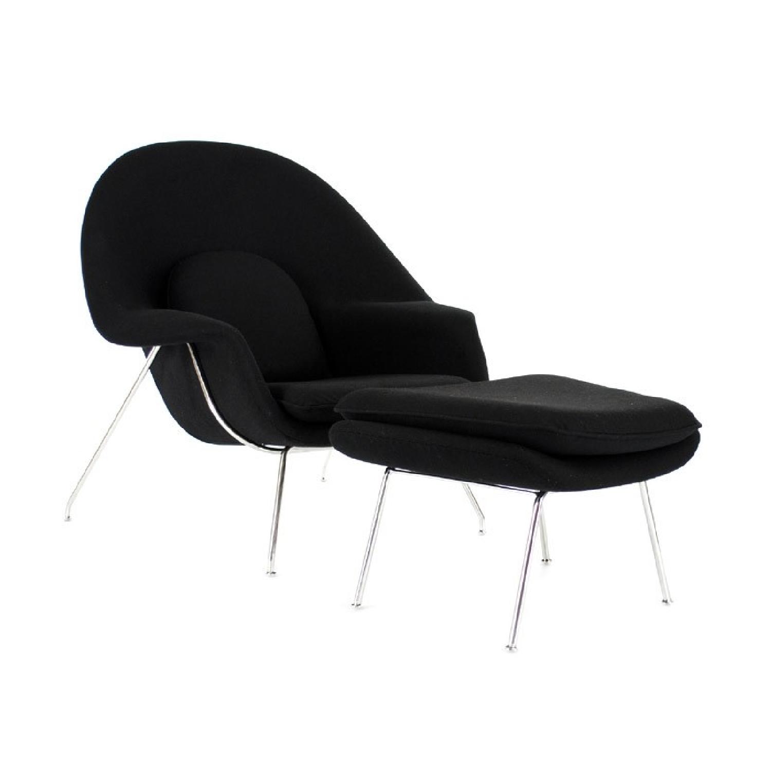Seller's Notes:The Womb Chair & Ottoman by Manhattan Home Design originally designed by Eero Saarinen continues to be one of the most recognized representations of mid-century modernism. This Saarinen-inspired womb lounge chair and ottoman set has both pieces attached with cushions for maximum comfort and support. Sitting down has never looked so stylish before. The womb chair is the bastion of neo-futuristic artwork, for which designer Eero Saarinen was well-established for.