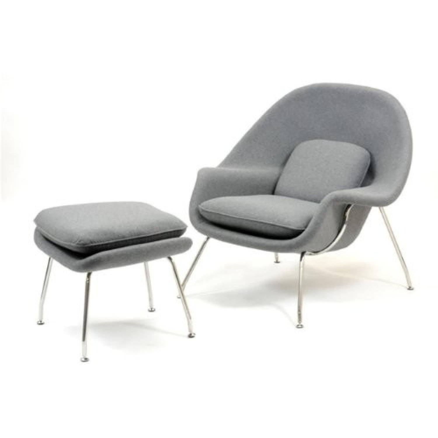 Seller's Notes:The Womb Chair & Ottoman by Manhattan Home Design originally designed by Eero Saarinen continues to be one of the most recognized representations of mid-century modernism. This Saarinen-inspired womb lounge chair and ottoman set has both pieces attached with cushions for maximum comfort and support. Sitting down has never looked so stylish before. The womb chair is the bastion of neo-futuristic artwork, for which designer Eero Saarinen was well-established for.
