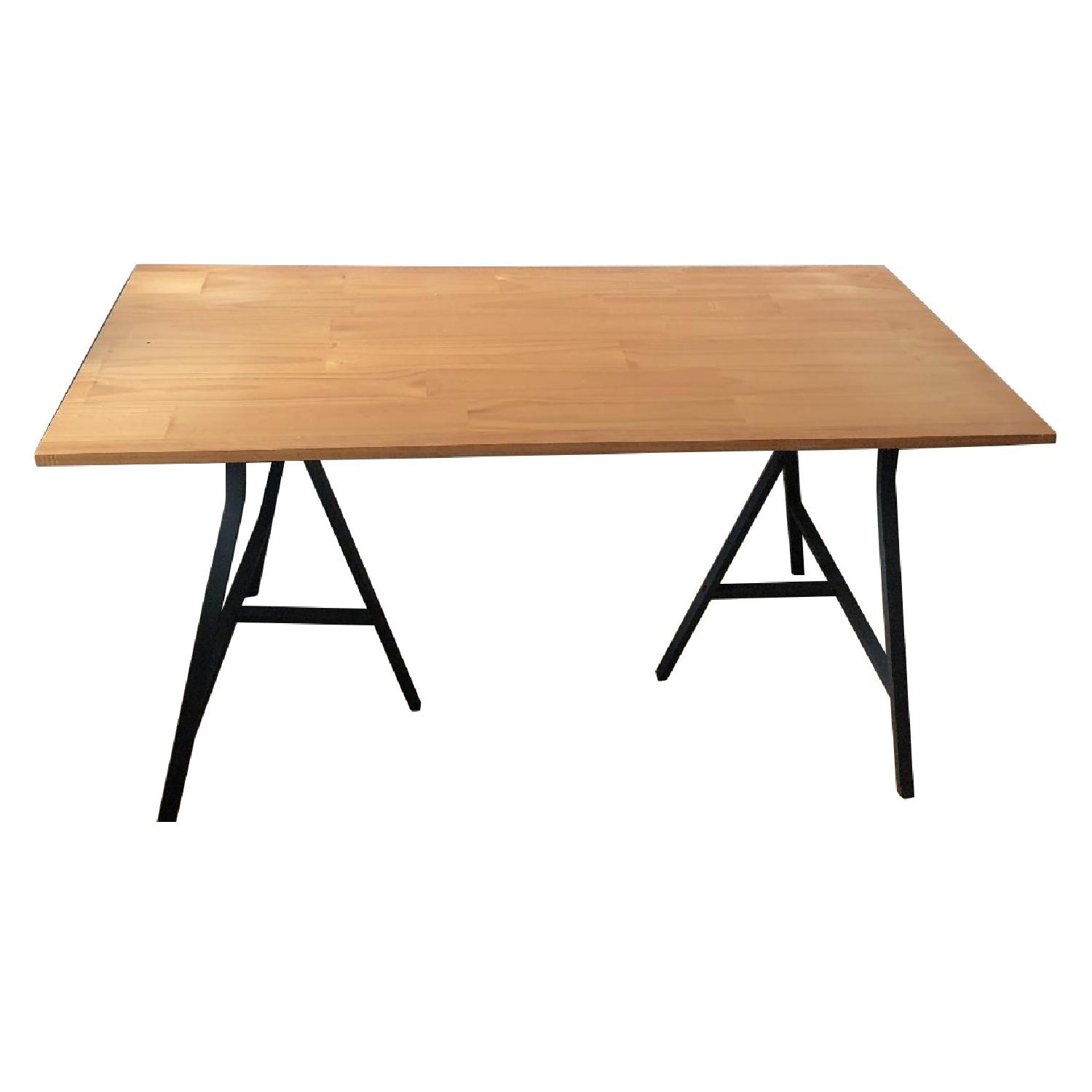 Wood Desktop w/ 2 Dark Gray Steel Crosscut Trestle Legs
