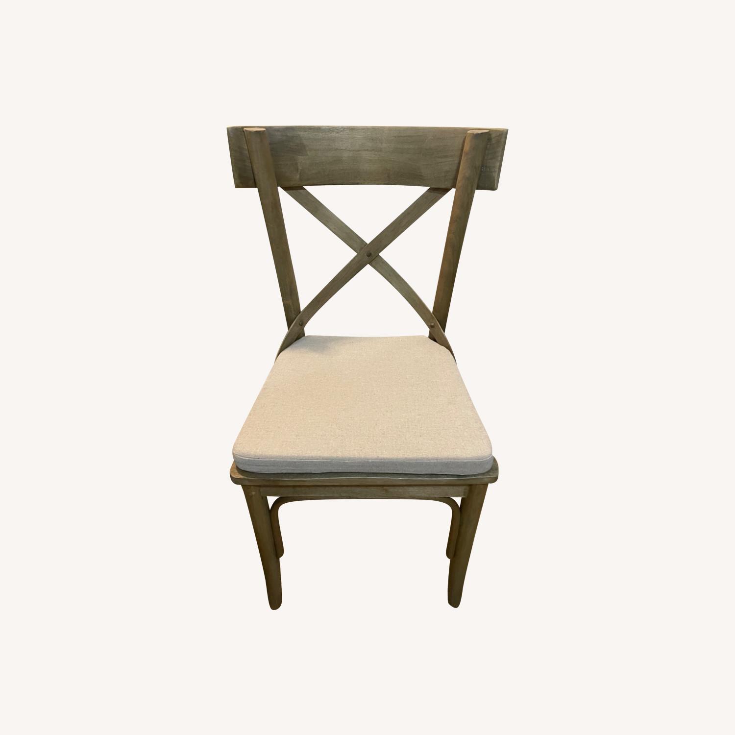 Seller's Notes:These beautiful wood dining chairs with cushions are in new condition and inspired by the French countryside. Perfect for any dining table.