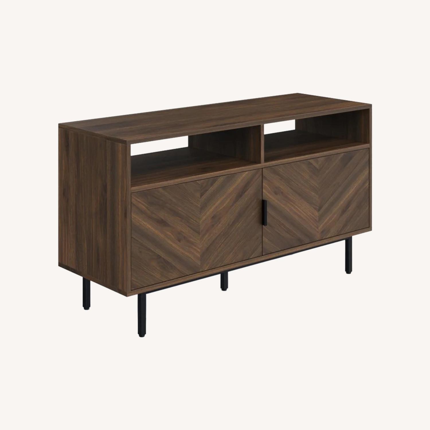 Wood Herringbone TV Cabinet Walnut