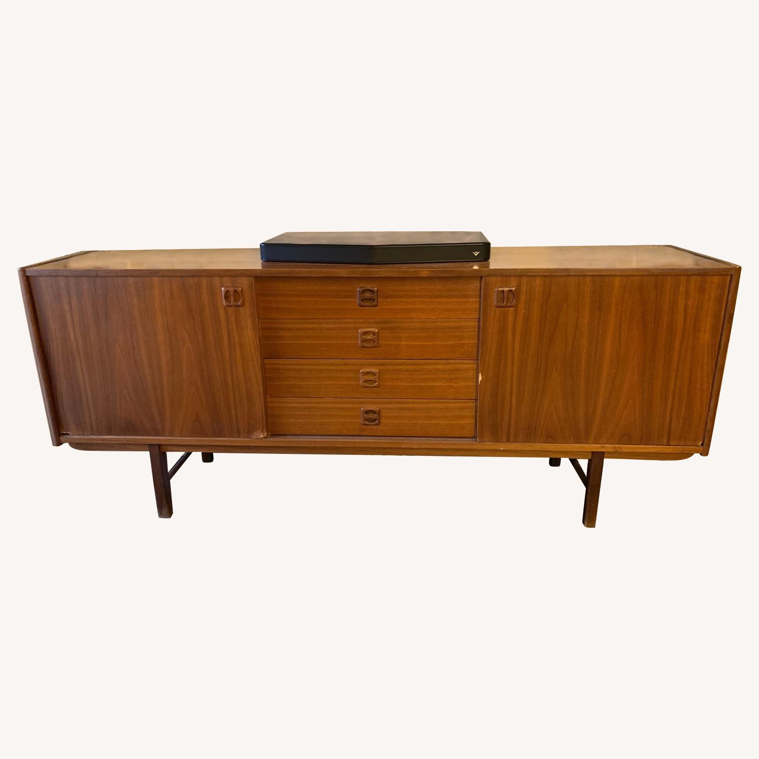 Seller's Notes:Hello!! I am moving and looking to sell some things! MID CENTURY MODERN SIDEBOARD - Walnut and Veneer - $300 OBO Originally $900 when I bought this at an antique shop 3 years ago (and definitely much more before that!) and it is perfect for your dining room or under your TV (which is how I have used it). -All drawers and sliding doors are functional but the bottoms of the sliding doors are a bit damaged. (This is the main wear on the piece.) -It has some scratches and marks on top and that someone with enough time and TLC could fix up! -Legs are in great conditions! -All drawers are in perfect condition. Very clean inside and function properly. -There are no shelves in the side cabinets but the little brass knobs that would hold the shelves are still there, should you choose to replace them. Length: 72" Depth: 16.5" Height: 30"