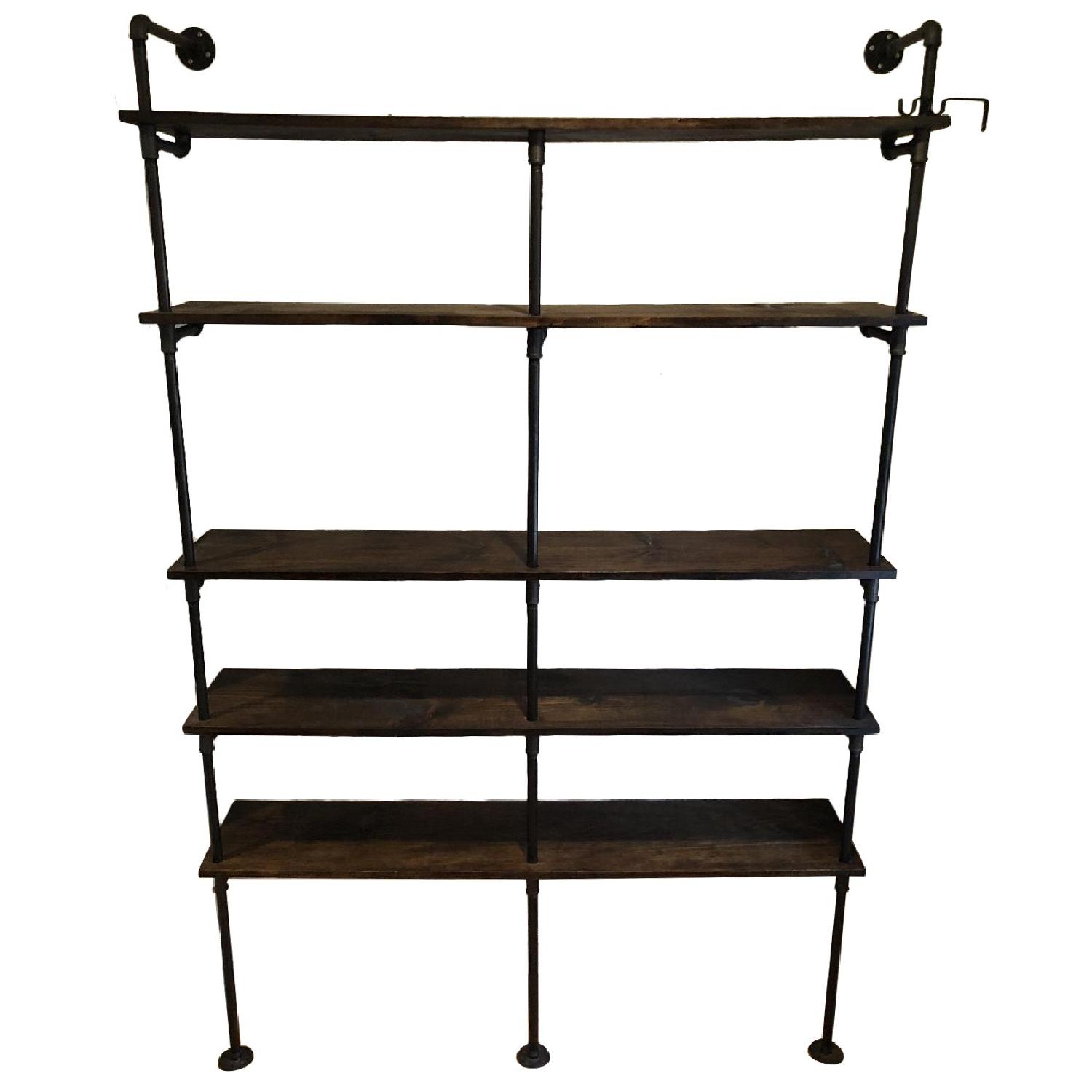 Seller's Notes:Handmade pipe and wood bookshelf with five(5) shelves. I cut, drilled, and stained the wood and re-finished the pipes. It's extremely strong and stable. Only needs to be adhered to the wall at the top and sits on feet on the floor. The pipes can be changed into a different configuration. Already disassembled and ready to take away. Unit measures 56" long x 10"deep x 86" tall