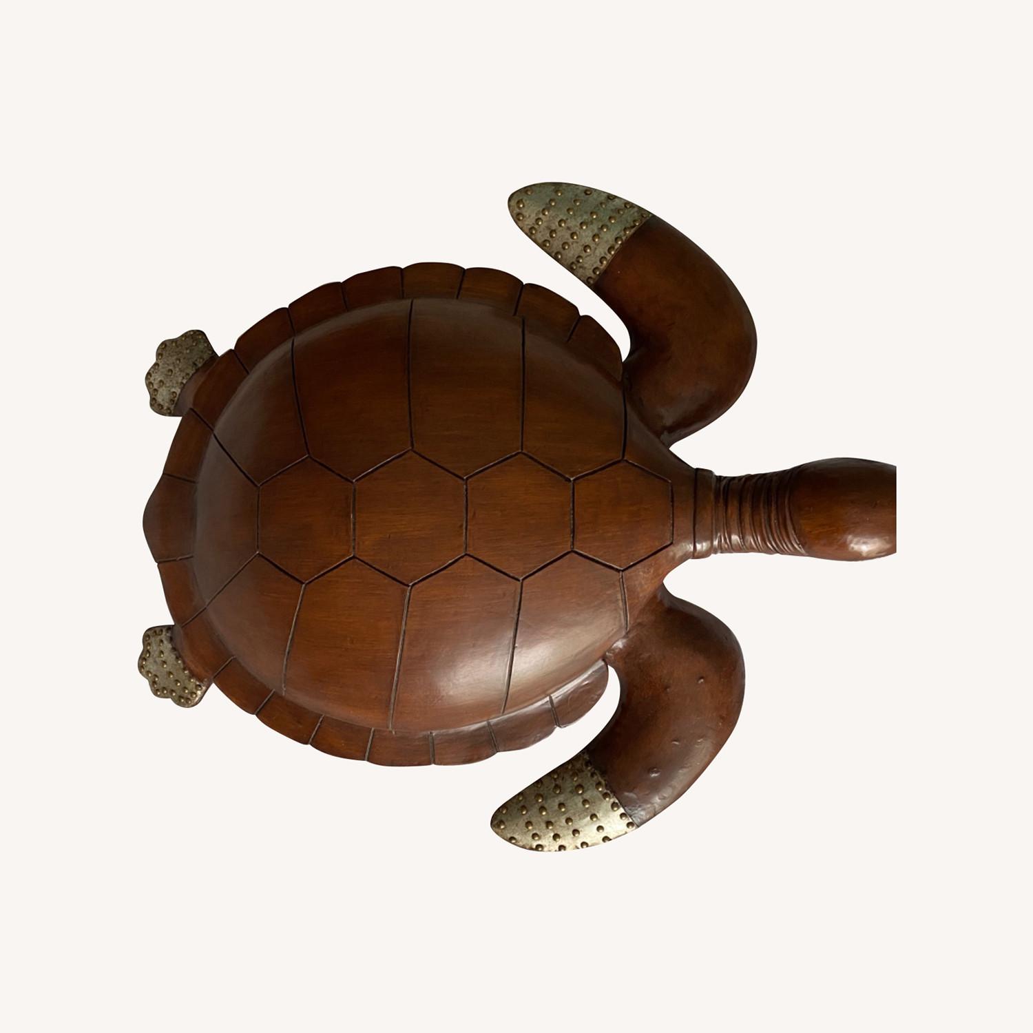 Seller's Notes:Display your love for sea turtles with this wood and hammered silver sculpture. Part of the Interlude home collection at Ashley furniture. Originally sold for $500.