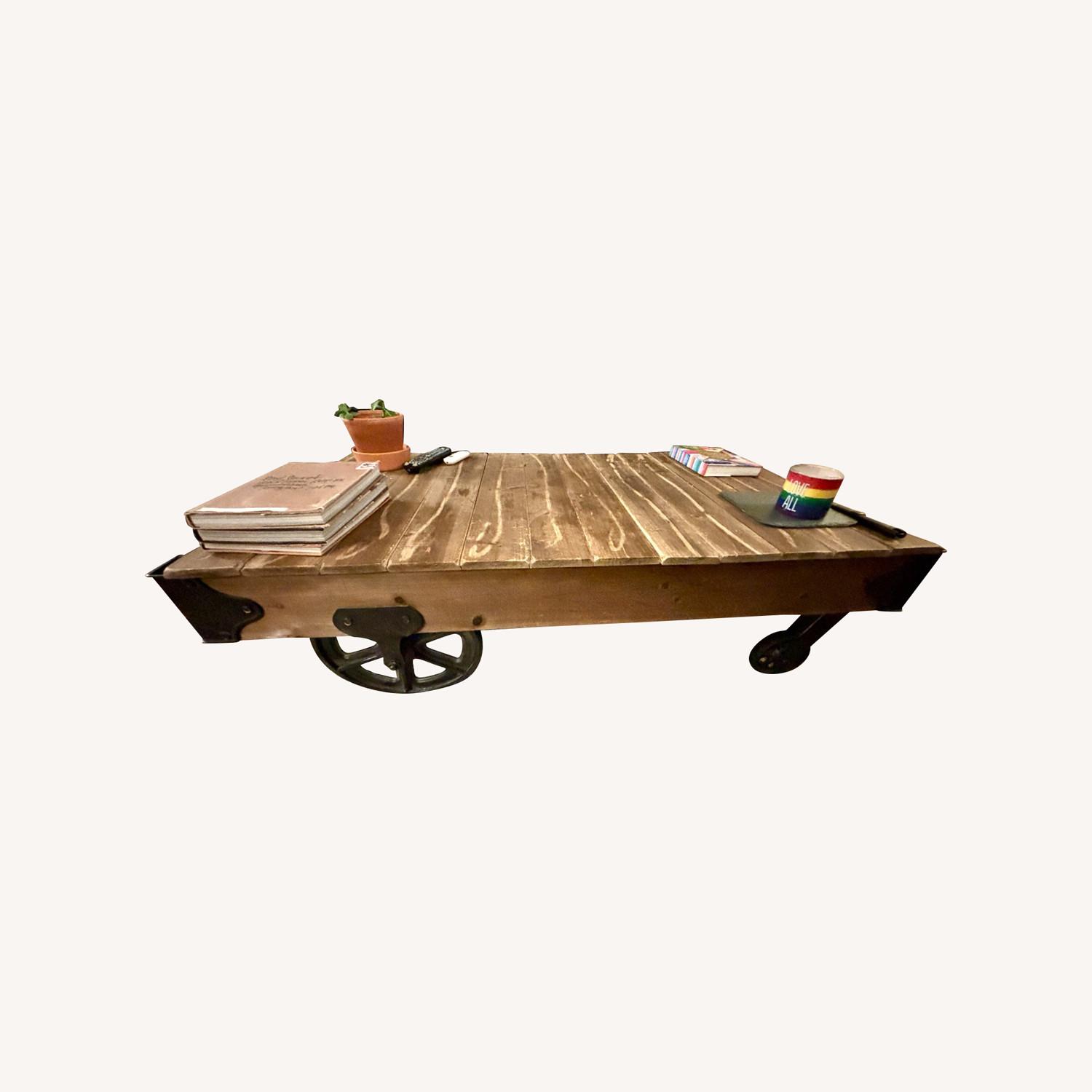 Wooden Factory Cart Rustic Coffee Table Industrial
